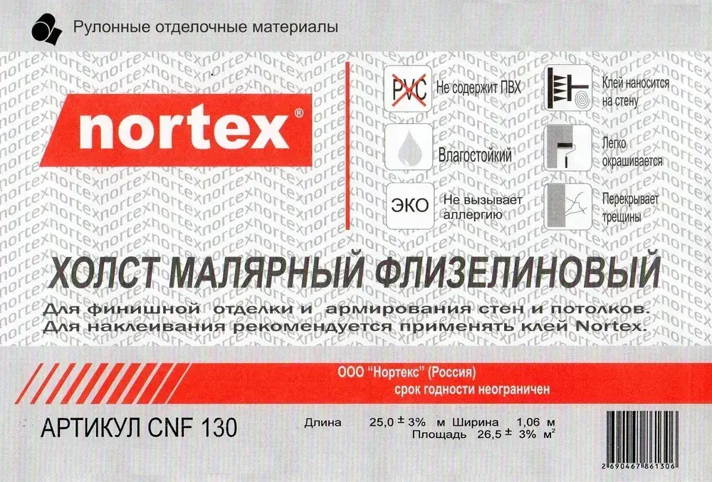 Малярный флизелин Nortex CNF 130 гладкие обои под покраску . Метровые, моющиеся, флизелиновые 1,06 метра для дома. Для зала, кухни, спальни, прихожей, детской и гостиной.офиса и квартиры.