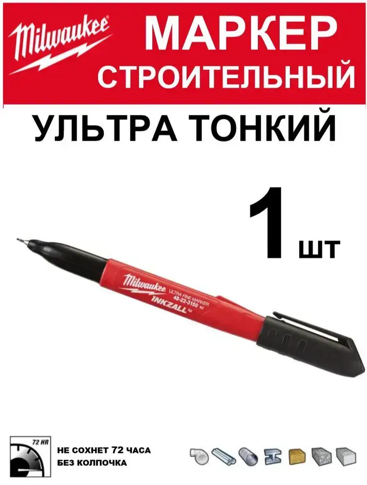 Маркер черный ультра тонкий для стройплощадки MILWAUKEE INKZALL Ultra Fine Point (1шт)