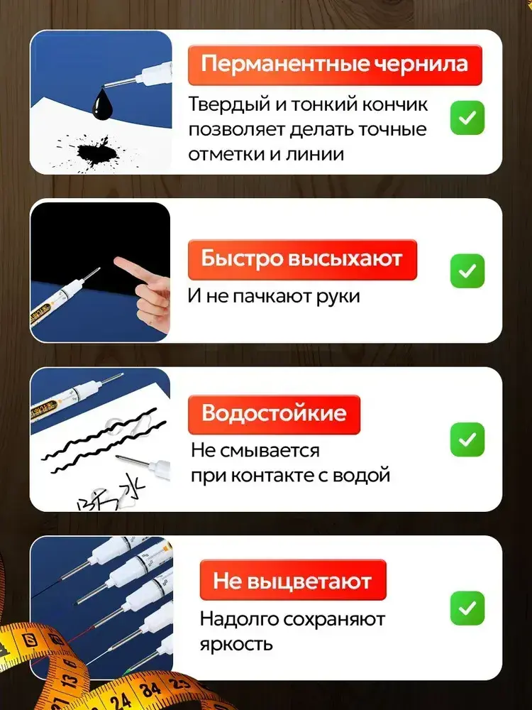 Маркер строительный 5 шт. тонкий разметочный с длинным наконечником - 5 шт. (черный, красный, зеленый, синий, белый). Маркеры строительные набор для разметки по металлу, дереву, стеклу, ткани