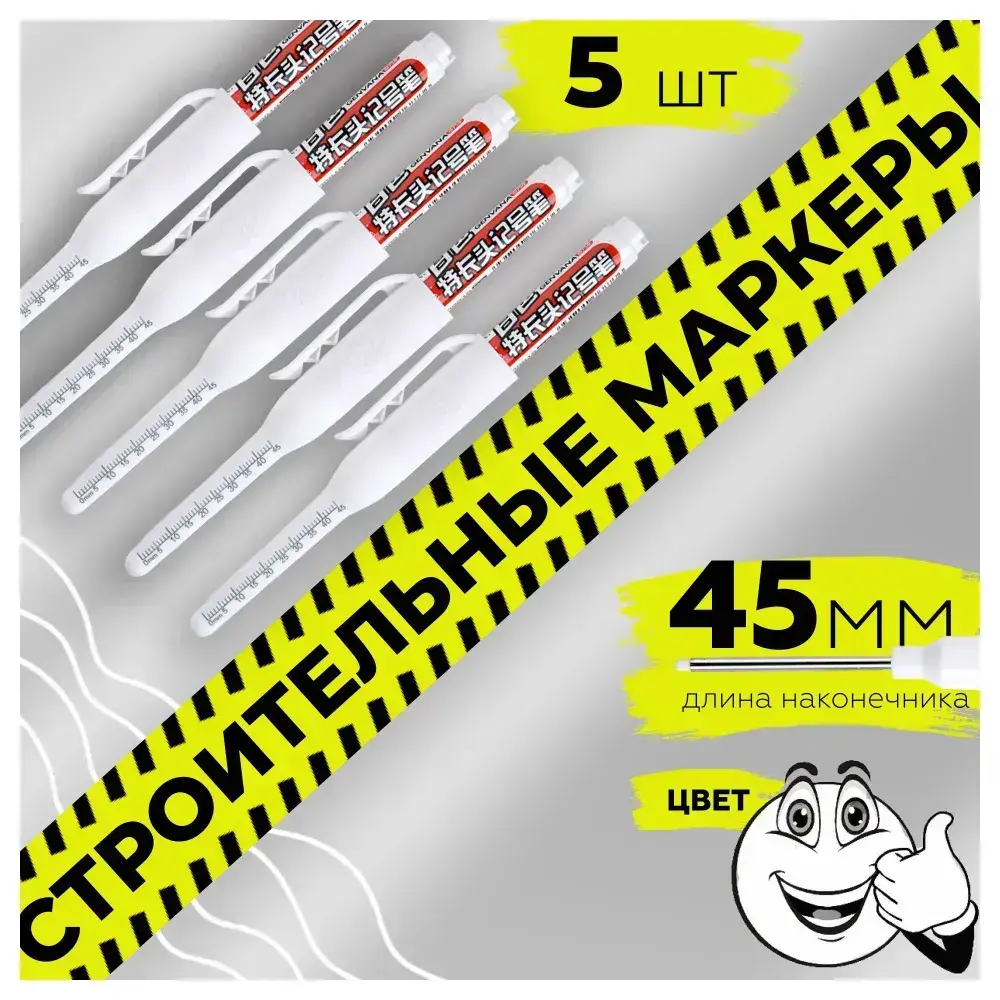 Маркер строительный белый, набор 5 штук, длинна стержня 45мм