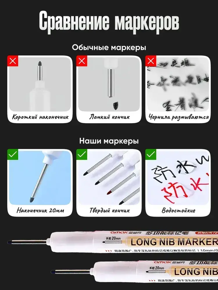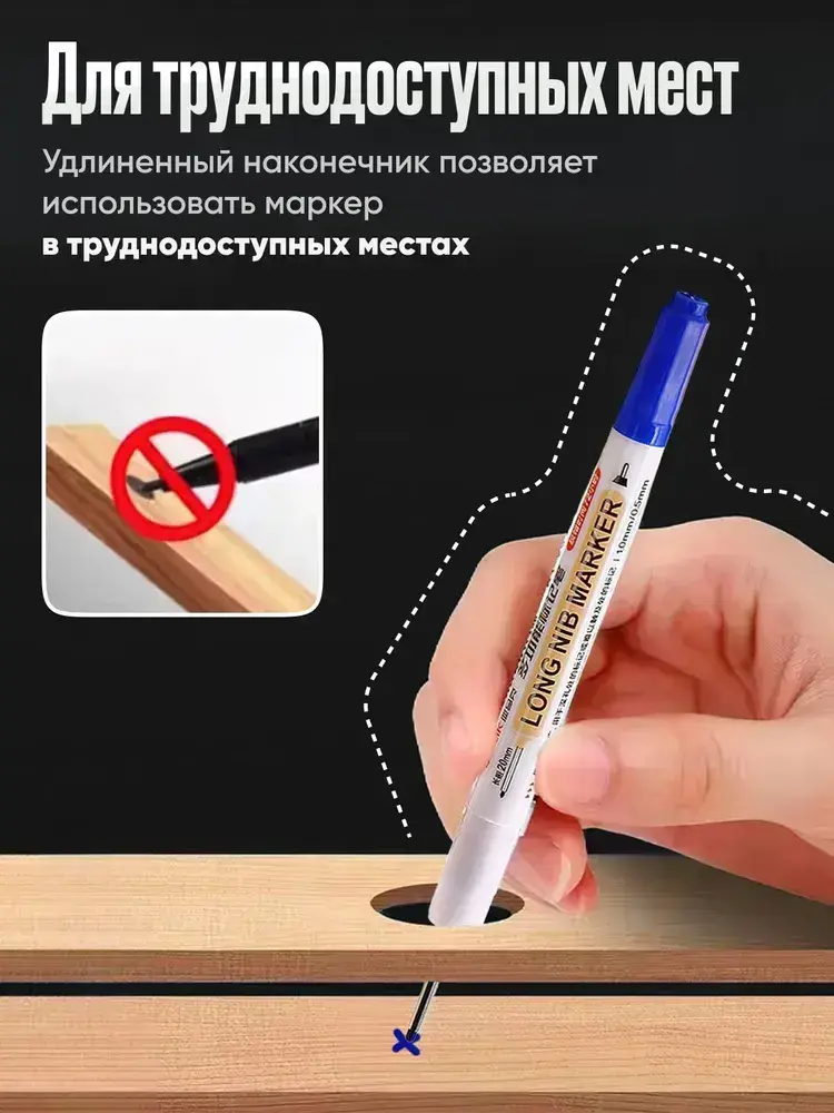 Маркер строительный тонкий двусторонний разметочный с длинным наконечником / 4 шт (черный, красный, зеленый, синий) / Маркеры строительные набор для разметки по металлу, дереву, стеклу, ткани