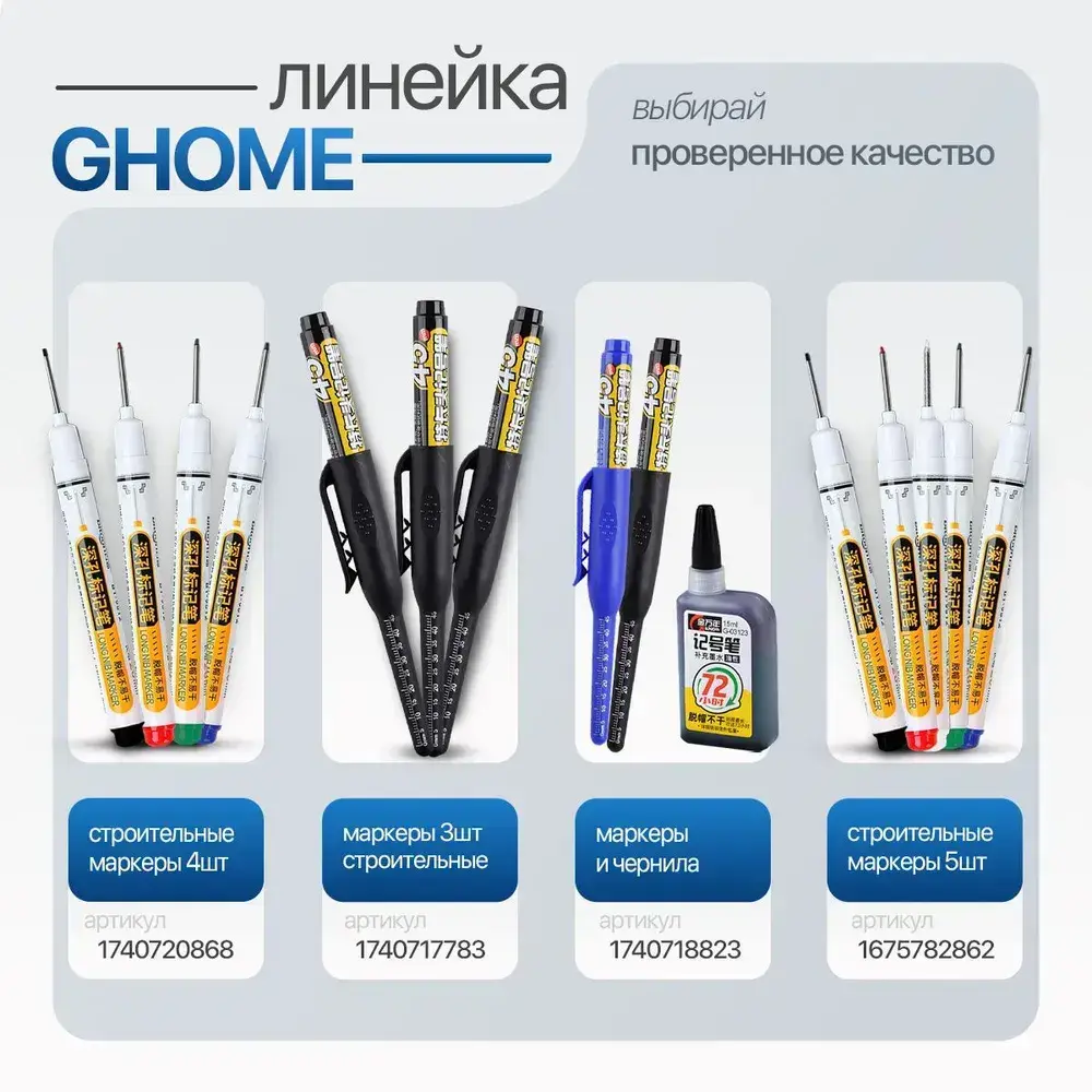 Маркер строительный тонкий разметочный с длинным наконечником 2 шт (черный и белый)