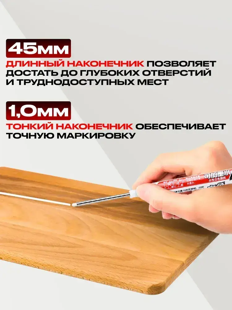 Маркер строительный тонкий разметочный с длинным наконечником 45мм заправляемый / 4 шт (черный, красный, синий, белый) / Маркеры строительные набор для разметки по металлу, дереву, стеклу, ткани