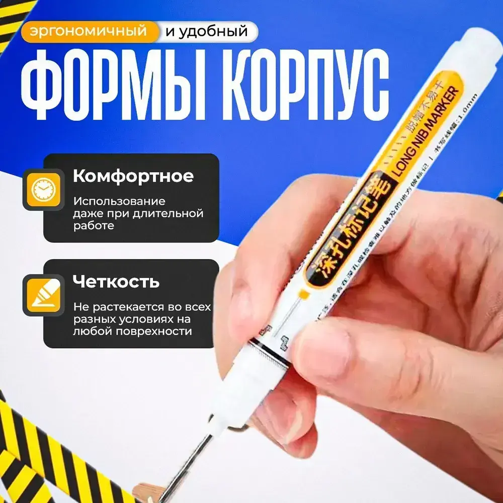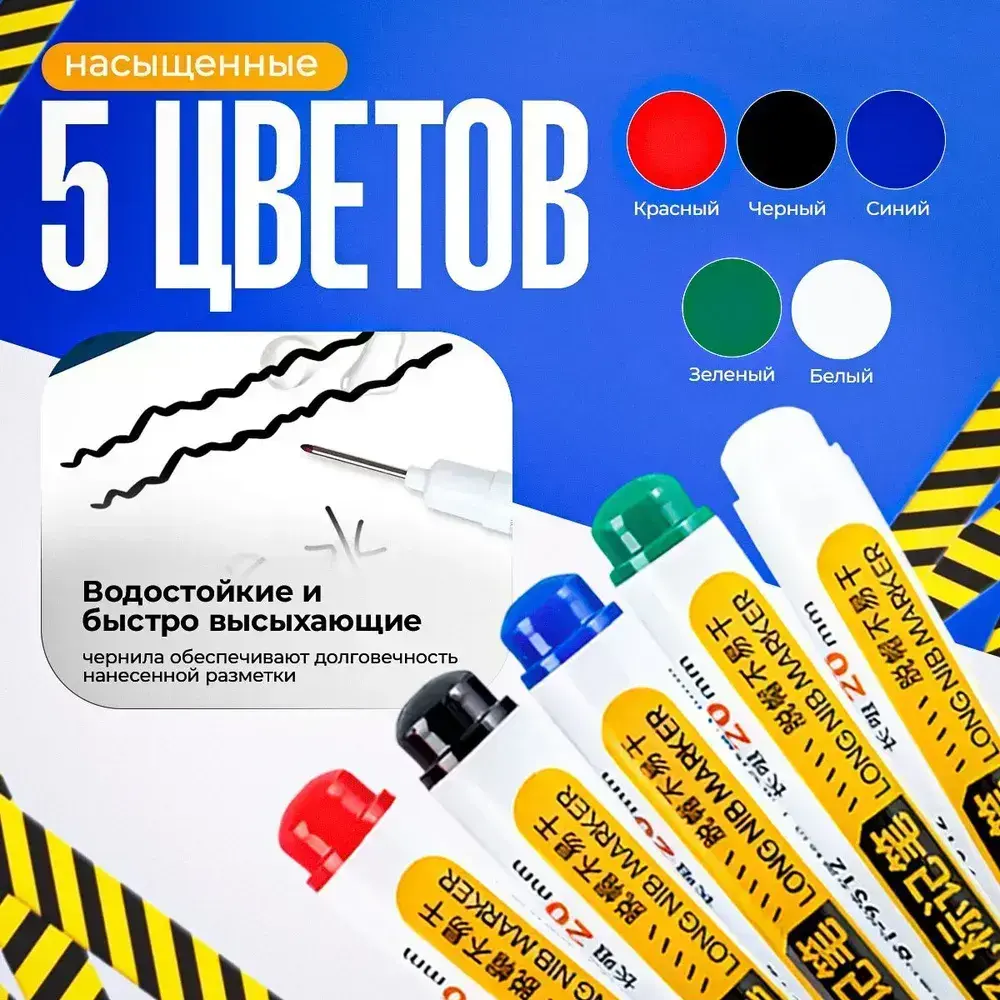 Маркер строительный тонкий разметочный с длинным наконечником, 5 шт