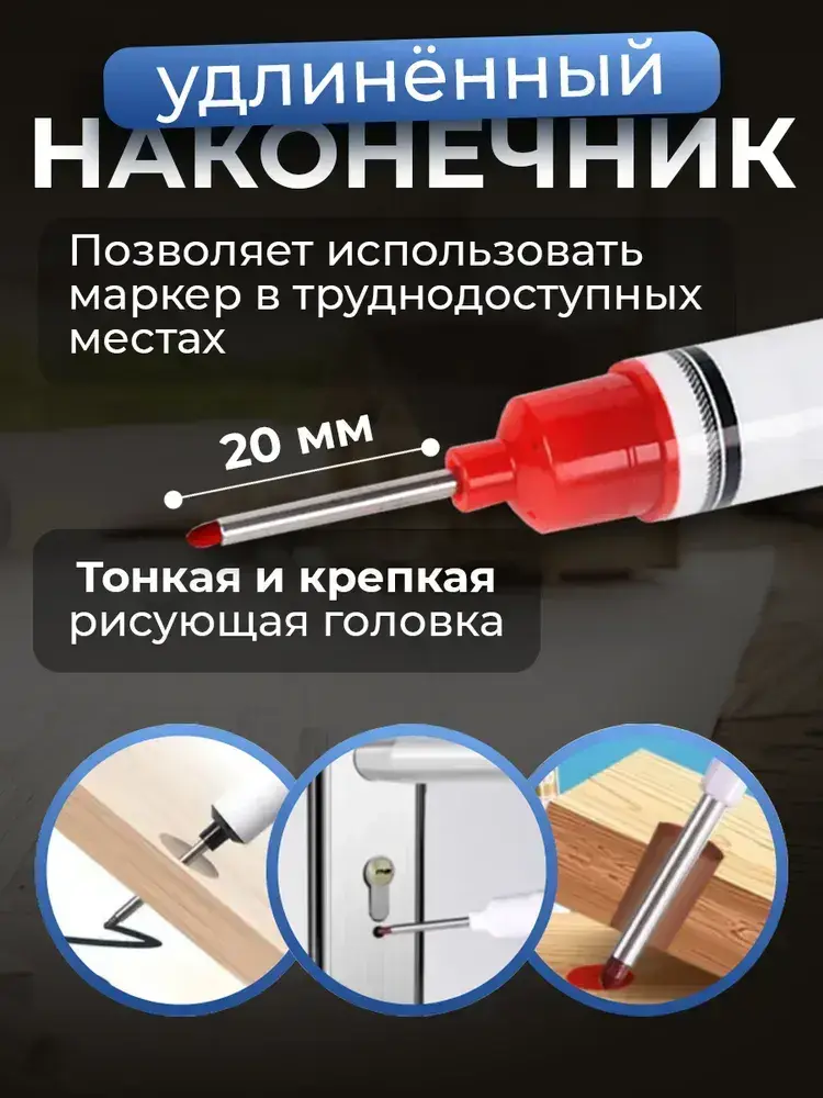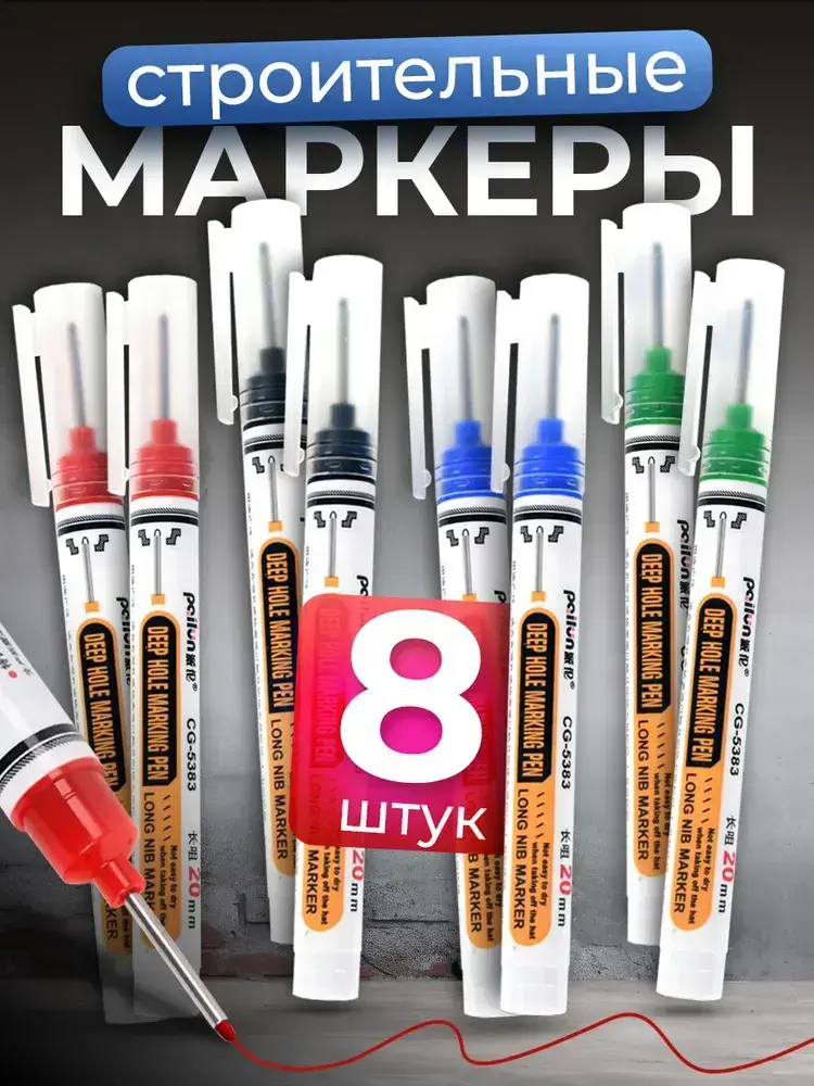 Маркер строительный тонкий разметочный с длинным наконечником 8 шт