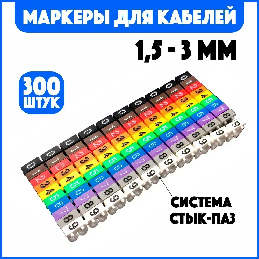 Маркировка для проводов и кабелей 1,5-3мм. комплект цифр "0-9" (300шт)
