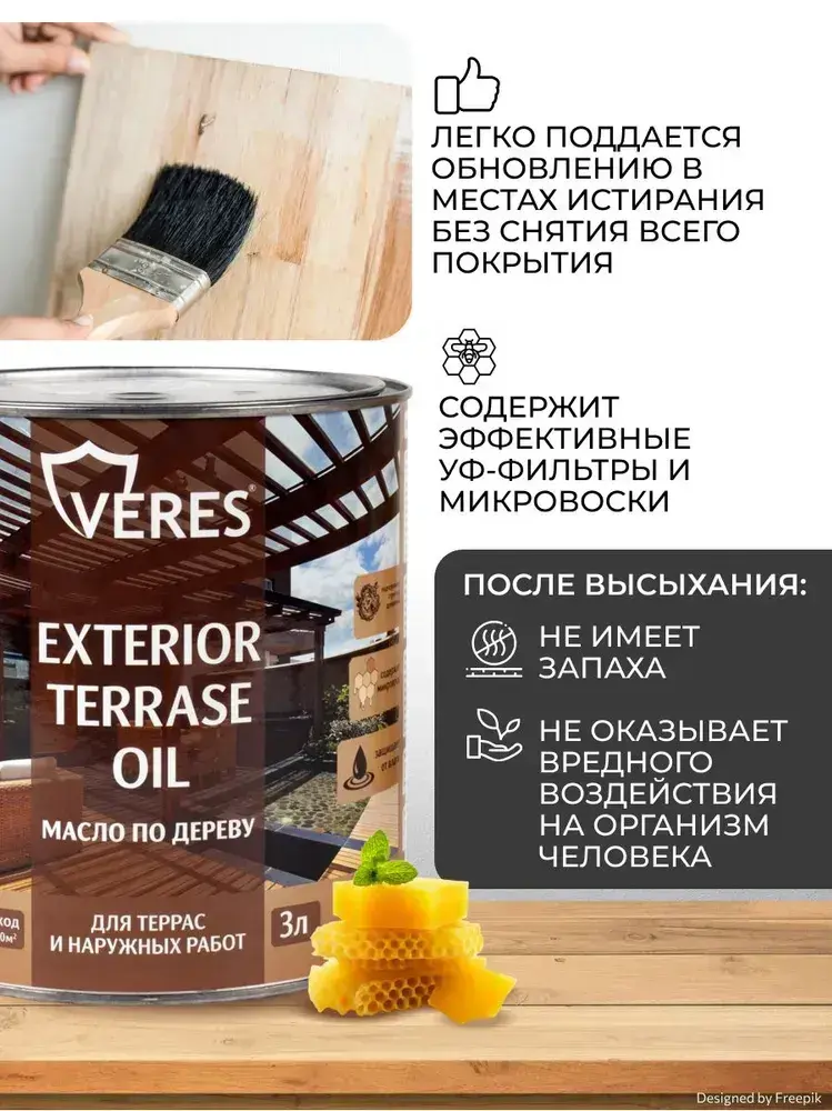 Масло для дерева Veres / Верес Exterior Terrase Oil, для террас, фасадов, беседок, садовой мебели, наружных работ 3 л, тик