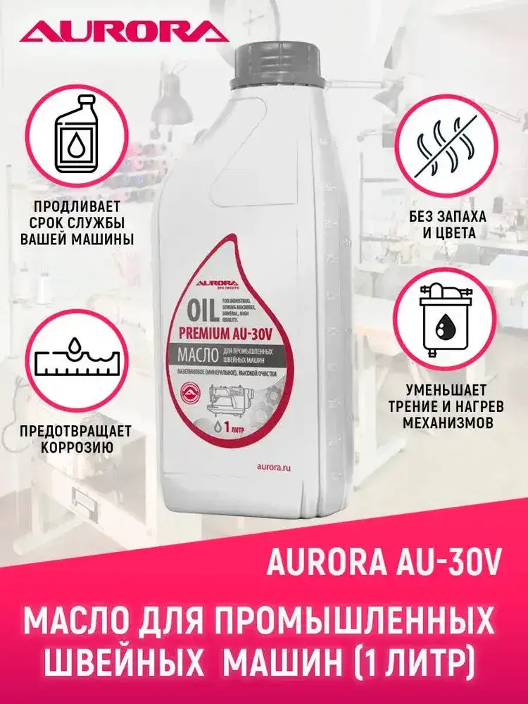 Масло для промышленных швейных машин (без запаха, минеральное, вазелиновое) Aurora AU-30V, 1 литр