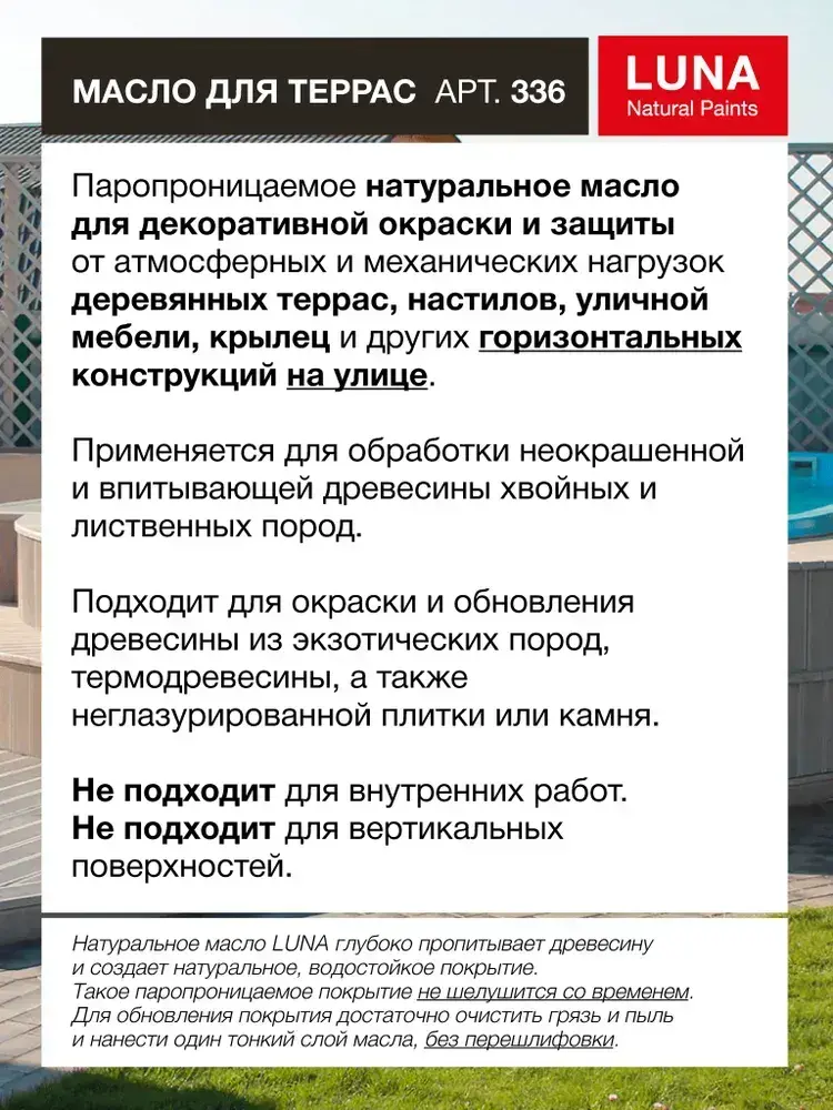 Масло для террас атмосферостойкое LUNA арт. 336, 2,5 л, 7024 Graphitgrau (серое, не шелушится, морилка, пропитка)