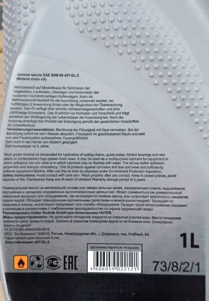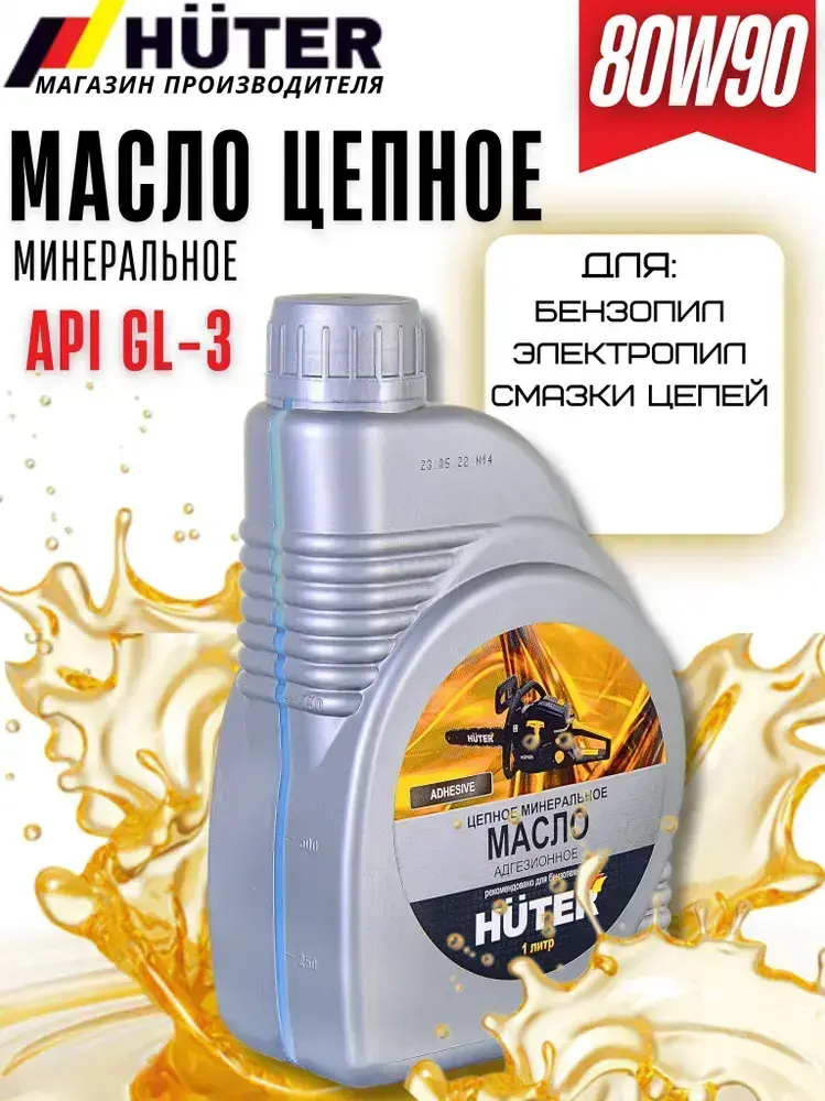 Масло для цепи бензопил и электропил 80W90 HUTER 1л
