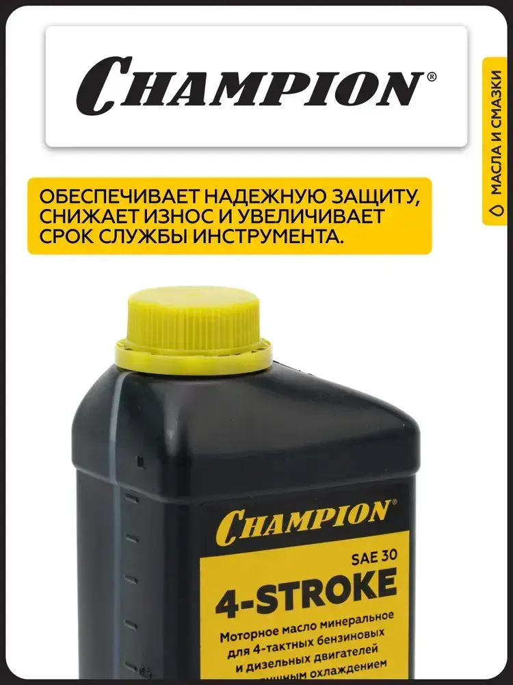 Масло минеральное CHAMPION SAE 30 API SL/CF для 4-тактных и дизельных двигателей, 1 л/ Масло для генератора