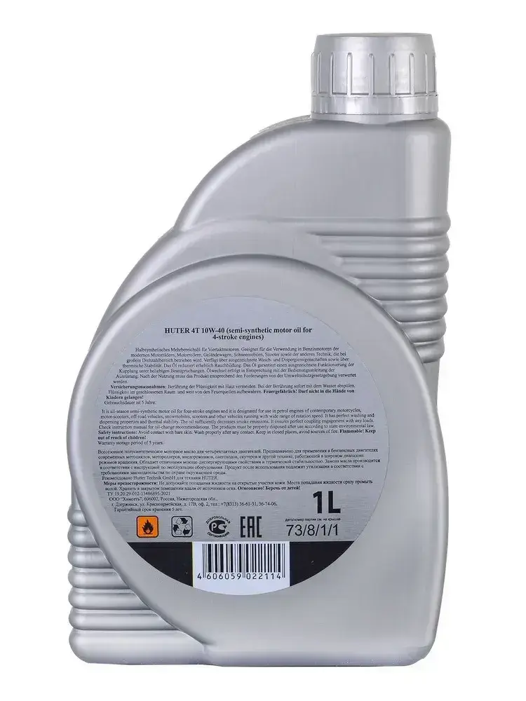 Масло моторное 10W-40 Huter полусинтетика 4-х тактных двигателей, 1л.