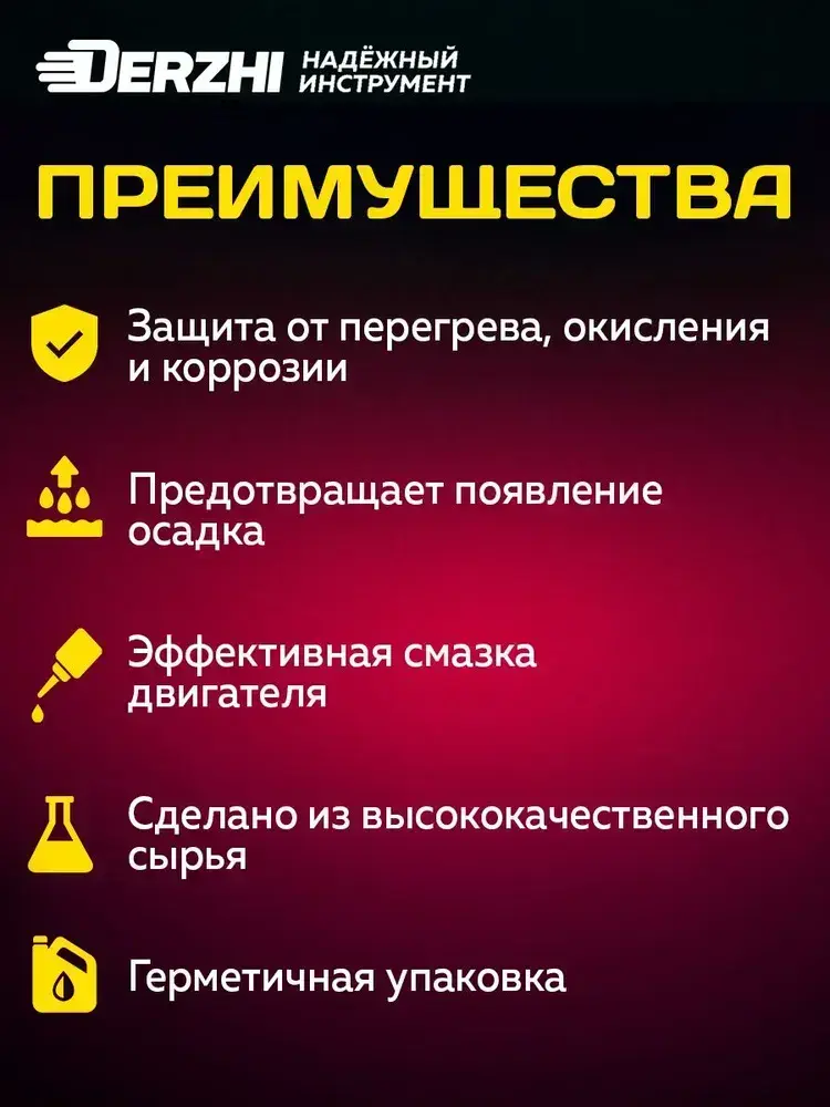 Масло моторное минеральное 2-х тактное для двигателя триммера, бензопилы, воздуходувки, мотобура, газонокосилки, 1 литр (красное) DERZHI