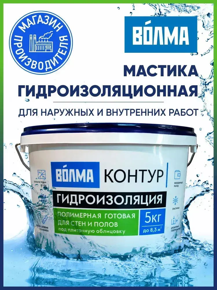 Мастика гидроизоляционная ВОЛМА Контур 5 кг, гидроизоляция для душевой, для ванной