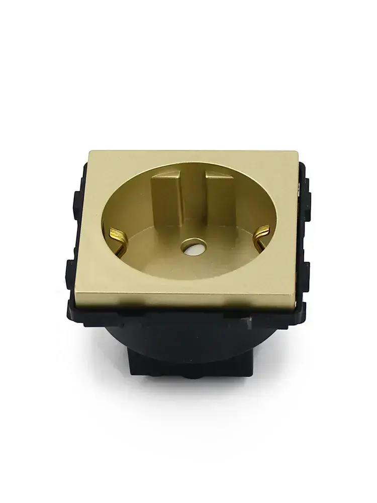 Механизм розетки KLUST Basic с заземлением, со шторками, золотой
