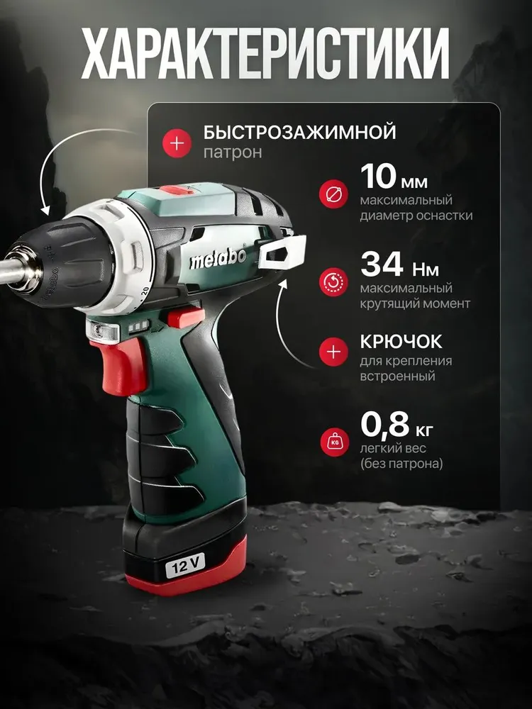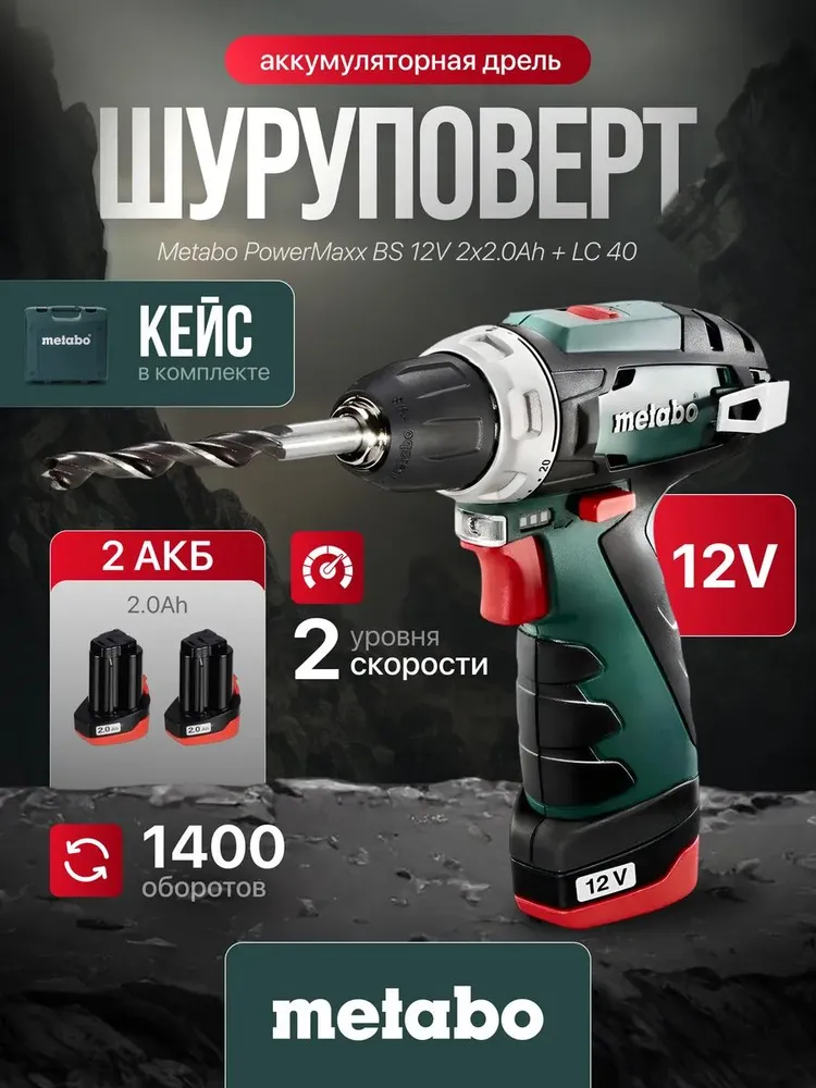Metabo Дрель-шуруповерт, 12 В, 34 Нм, 2 АКБ