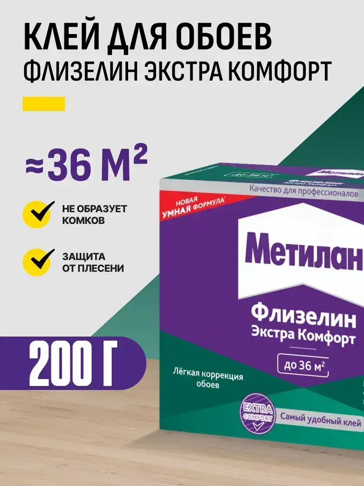 Метилан клей для обоев на флизелиновой основе / Metylan Флизелин Экстра Комфорт 200 г