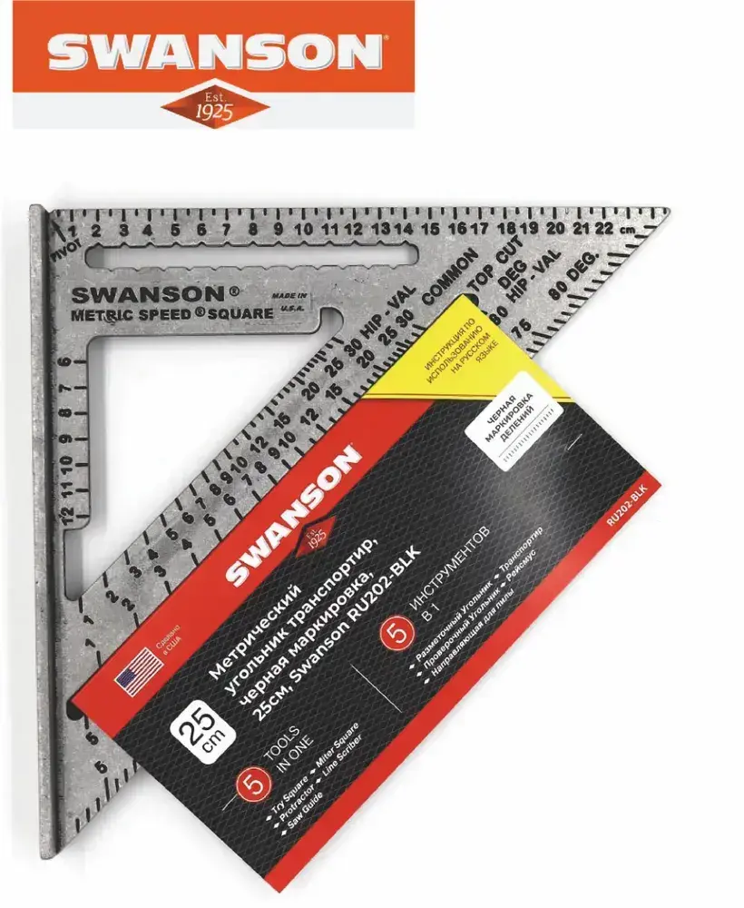 Метрический угольник Swanson (Свенсона) с черной маркировкой