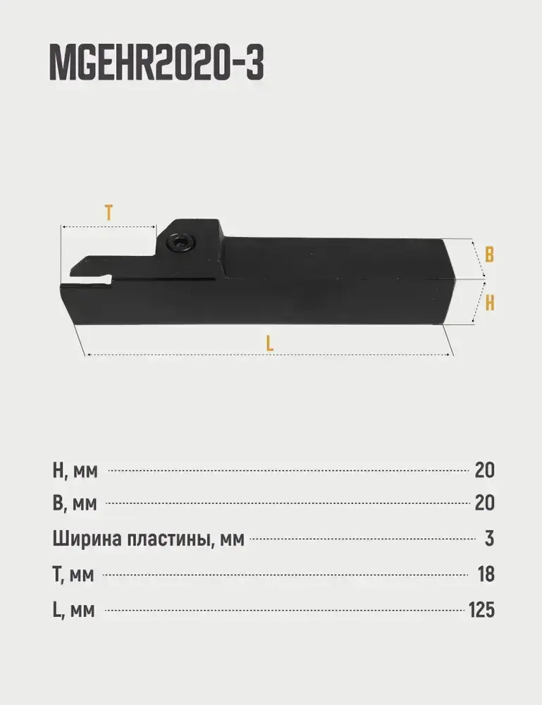 MGEHR2020-3 Резец отрезной, канавочный по металлу без пластин