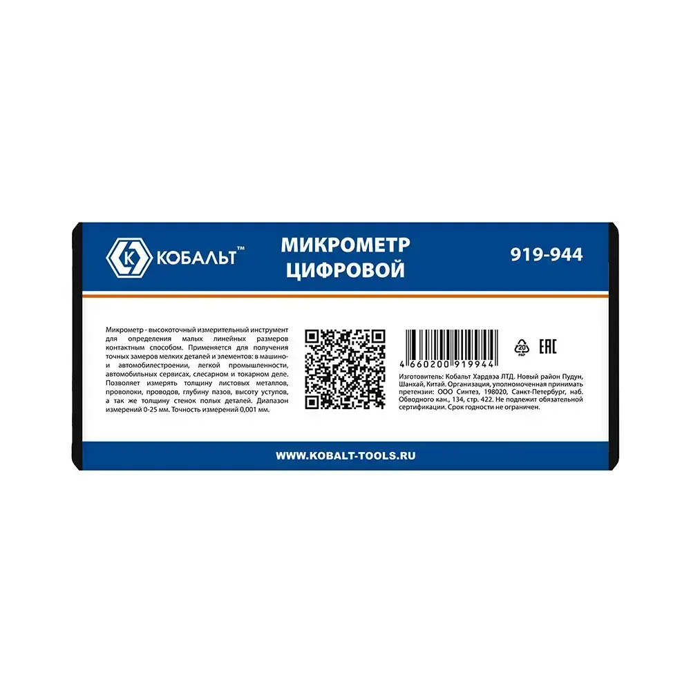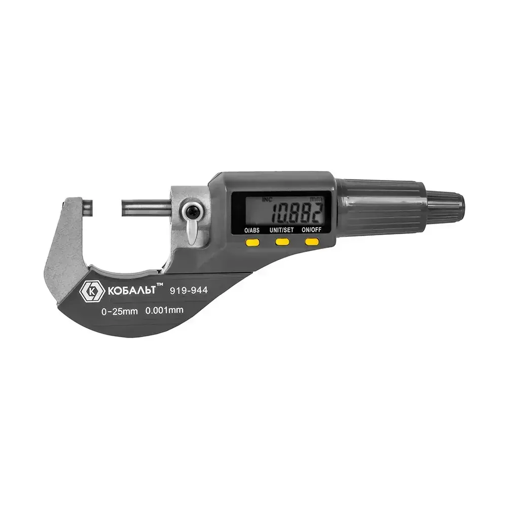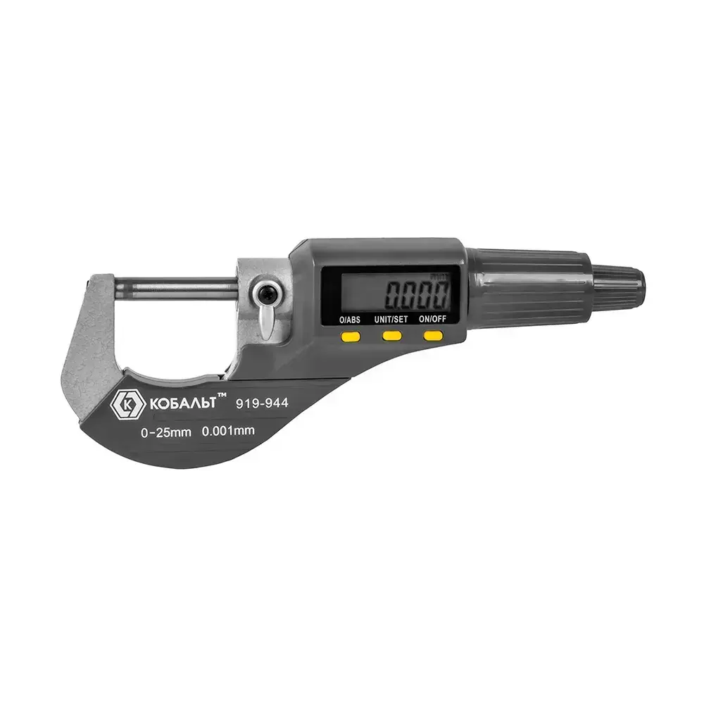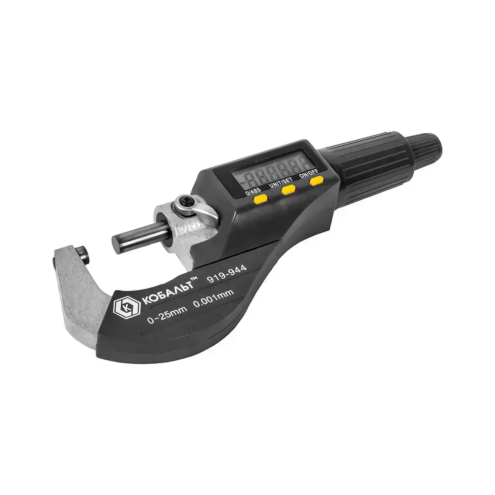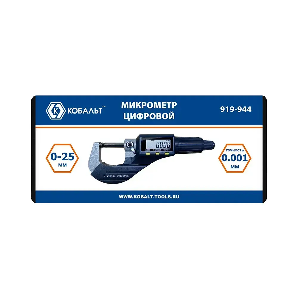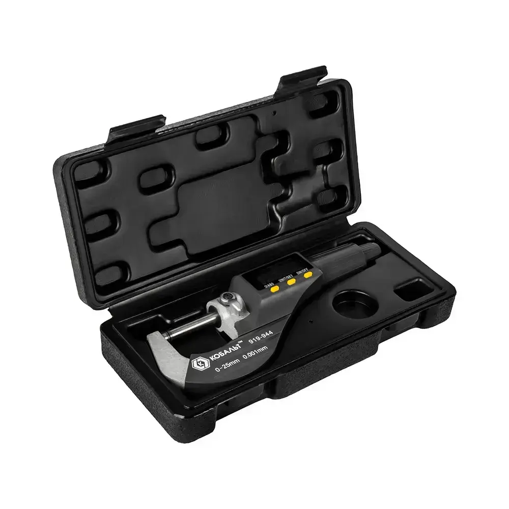 Микрометр КОБАЛЬТ цифровой, диапазон измерений 0-25 мм, точность 0,001 мм, кейс (919-944), шт