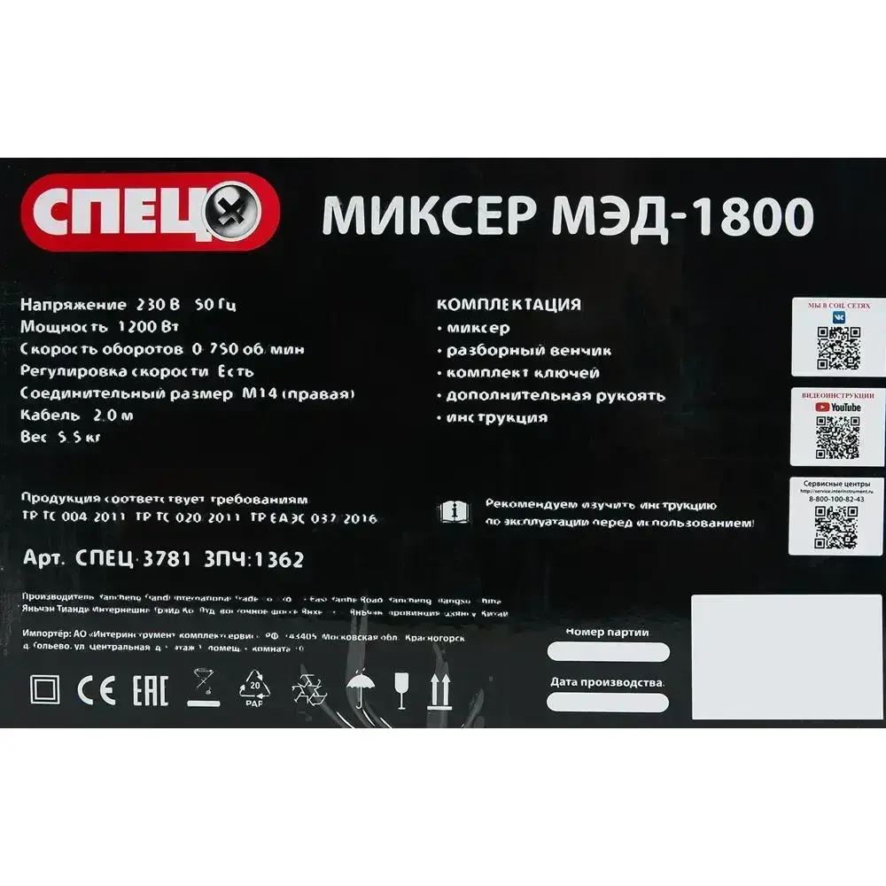 Миксер строительный мощность 1200 Ватт, 1 шт., полезный