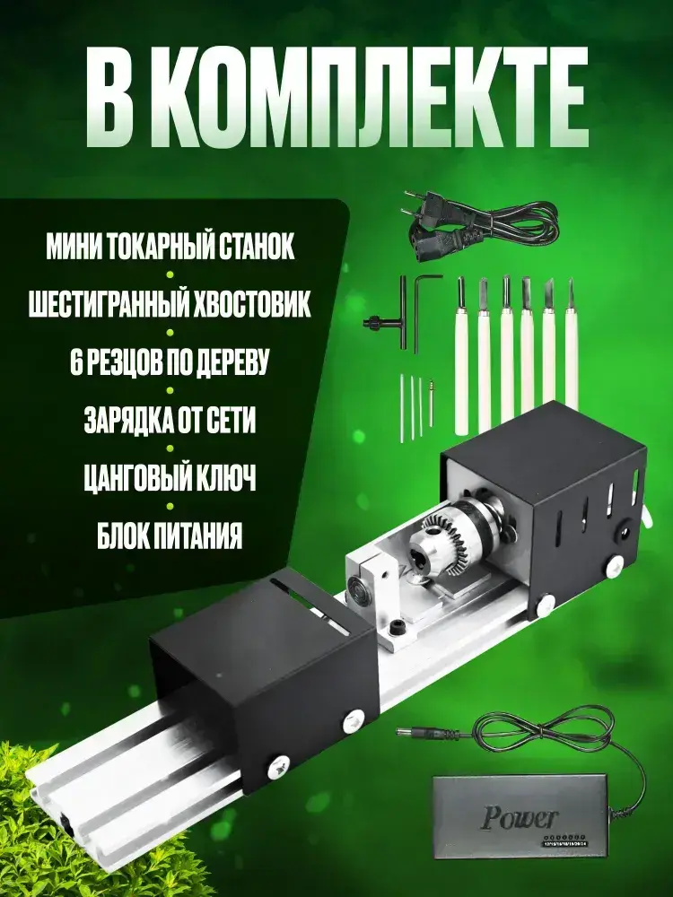 Мини токарный станок по дереву Master, шлифовка, обработка, полировка / инструменты в комплекте