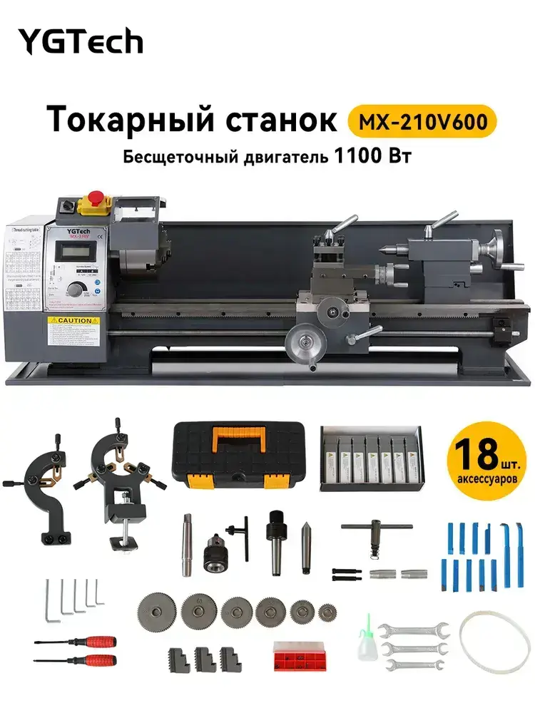 Многофункциональный высокоточный токарный станок MX210V600 1100 Вт с набором аксессуаров из 16 предметов /Улучшенная модель нового поколения