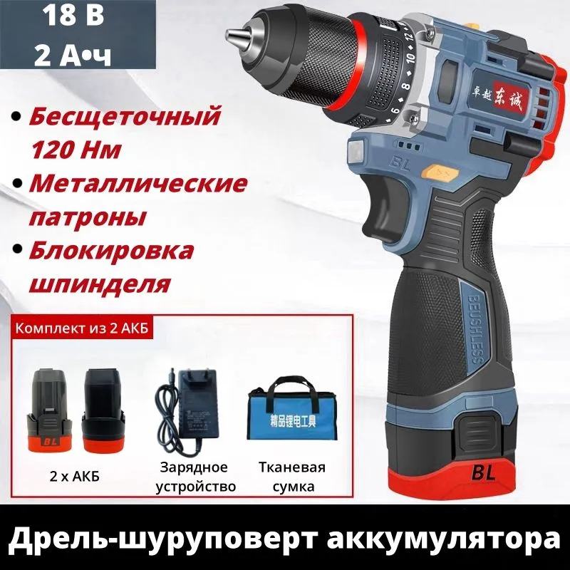 Mokital Дрель-шуруповерт, 18 В, 120 Нм, 2 АКБ