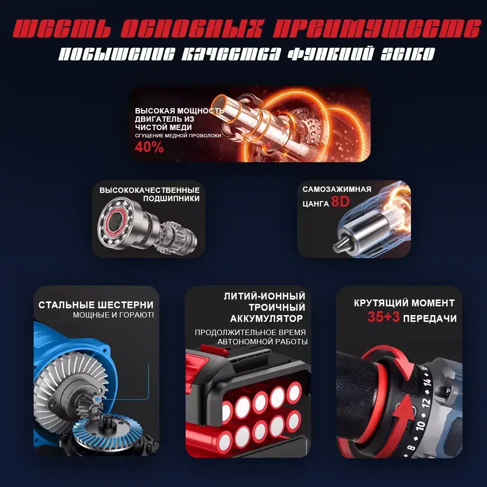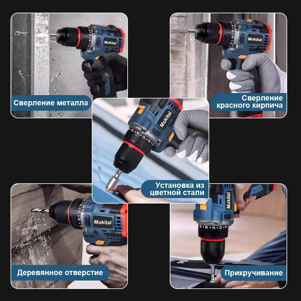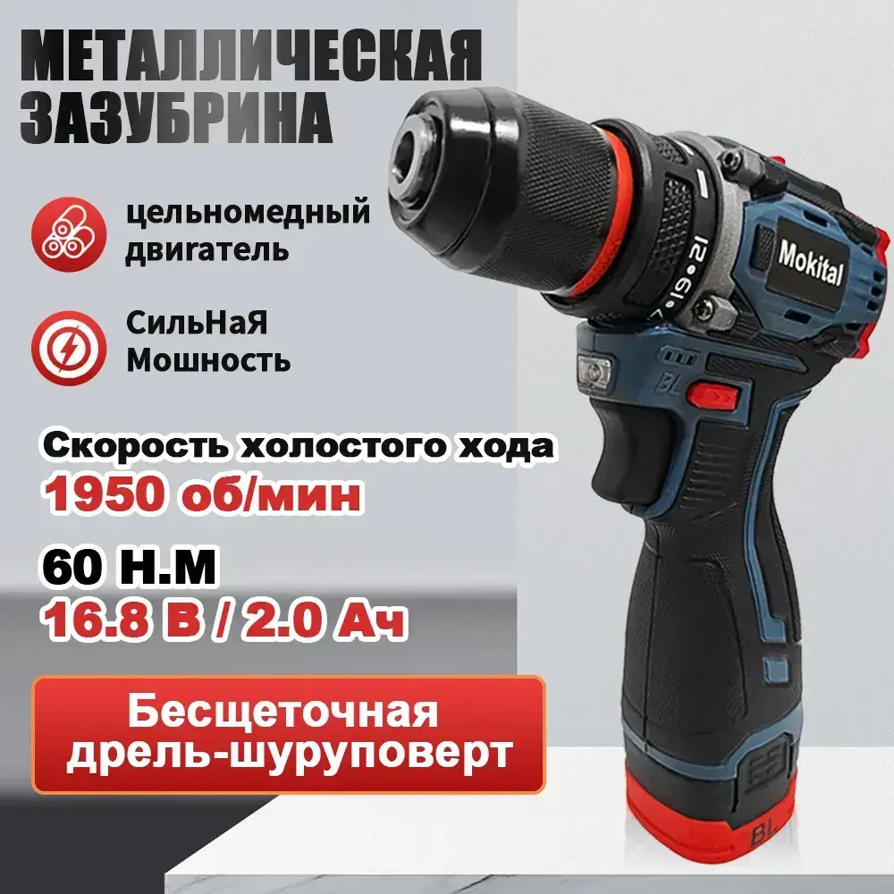 Mokital Дрель-шуруповерт, От аккумулятора, 16.8 В, 60 Нм, 2 АКБ