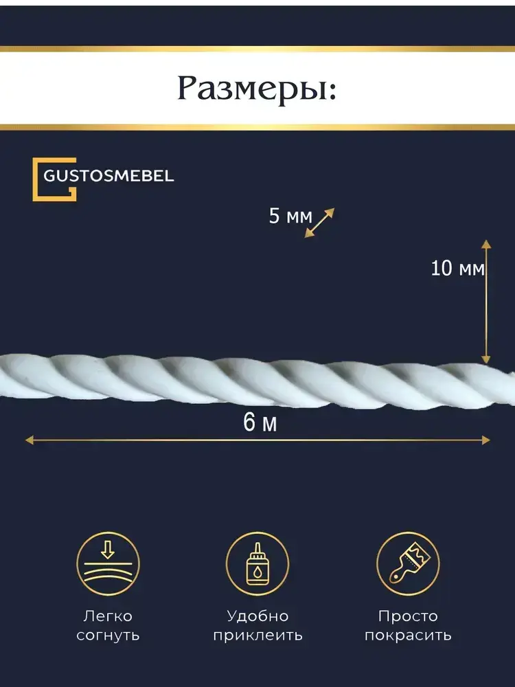 Молдинг гибкий декоративный для мебели и стен ПВХ10х5 мм 6 метров