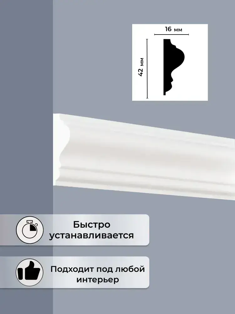 Молдинг ударопрочный полимер 16*42мм, 2м.шт.