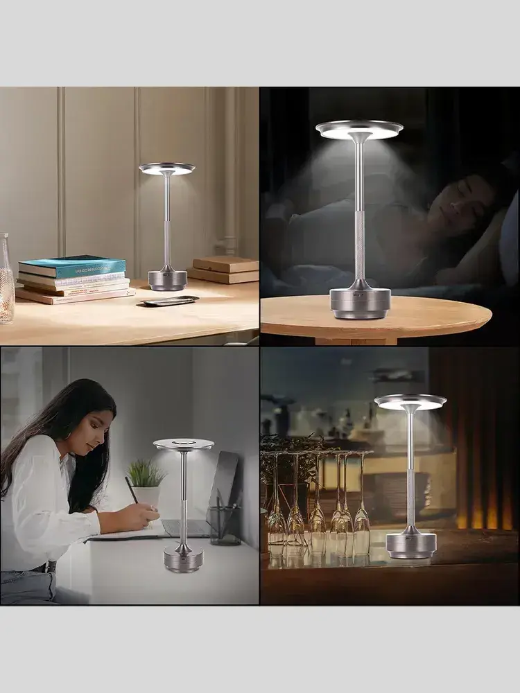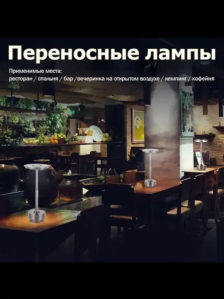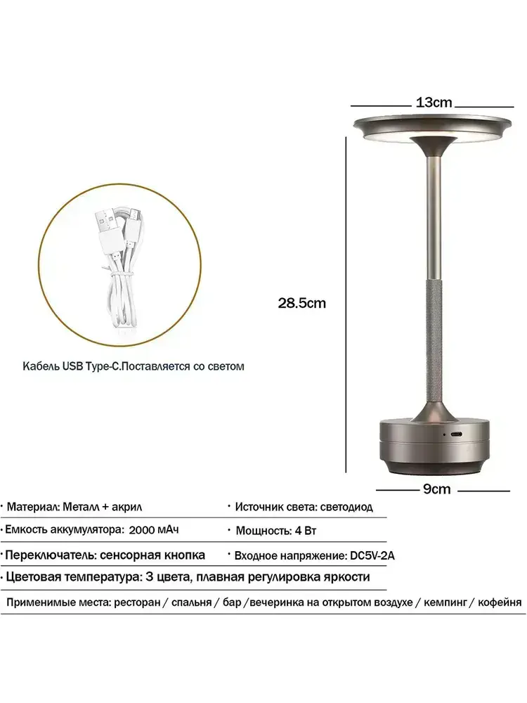 MONOBIN Лампа настольная ночник беспроводная сенсорная, Трехцветное затемнениедля ресторана, отеля, бара, кафе и спальниСеребро.