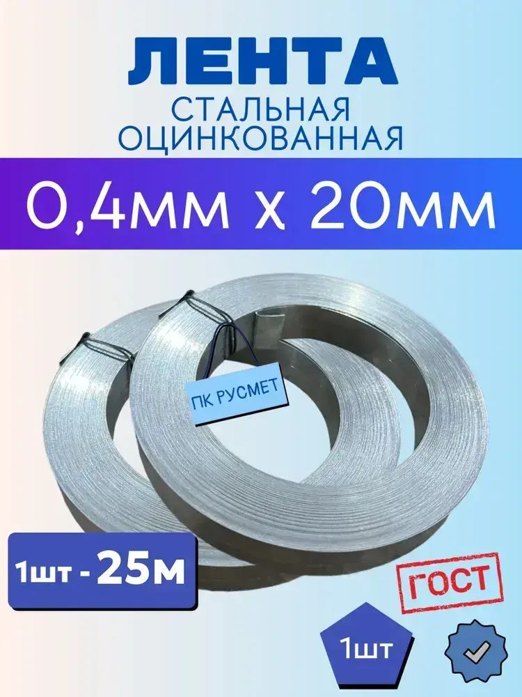 Монтажная Лента стальная оцинкованная 0,4х20мм, длина 25 метров (1 шт) не перфорированная для теплиц/парника