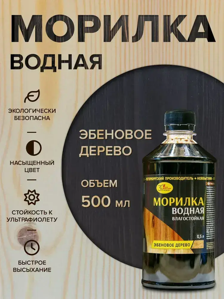 Морилка для дерева ЭБЕНОВОЕ ДЕРЕВО, Новбытхим 500мл, пропитка на водной основе, окарас бумажной лозы