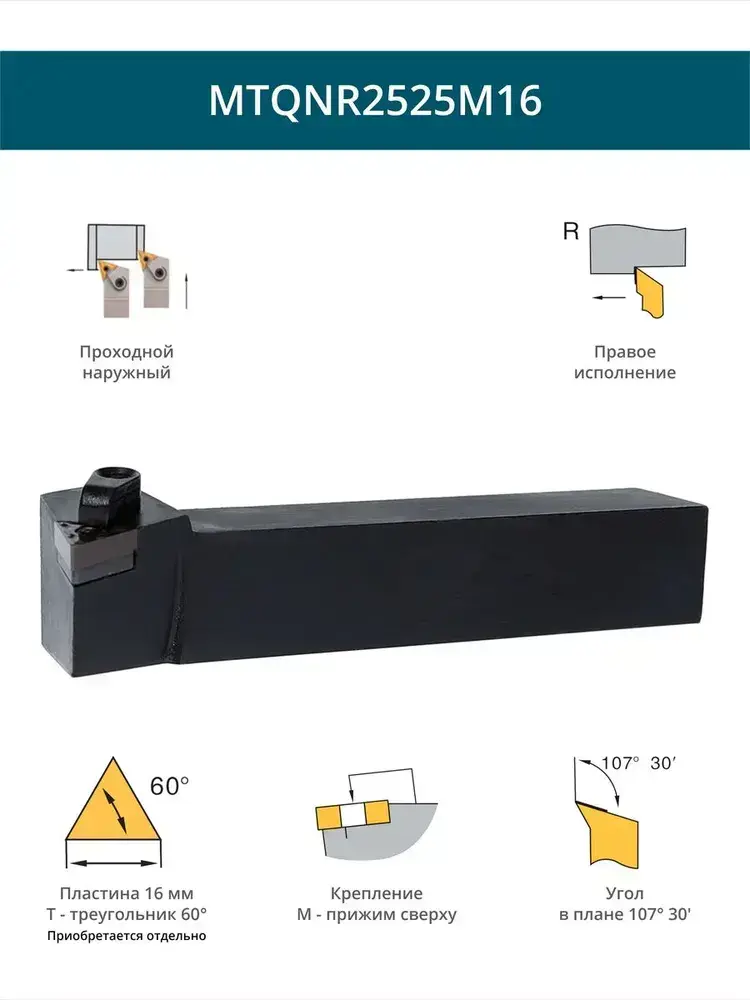 MTQNR2525M16 Резец токарный для наружного точения проходной правый / пластина T Треугольник 60 - 16 мм