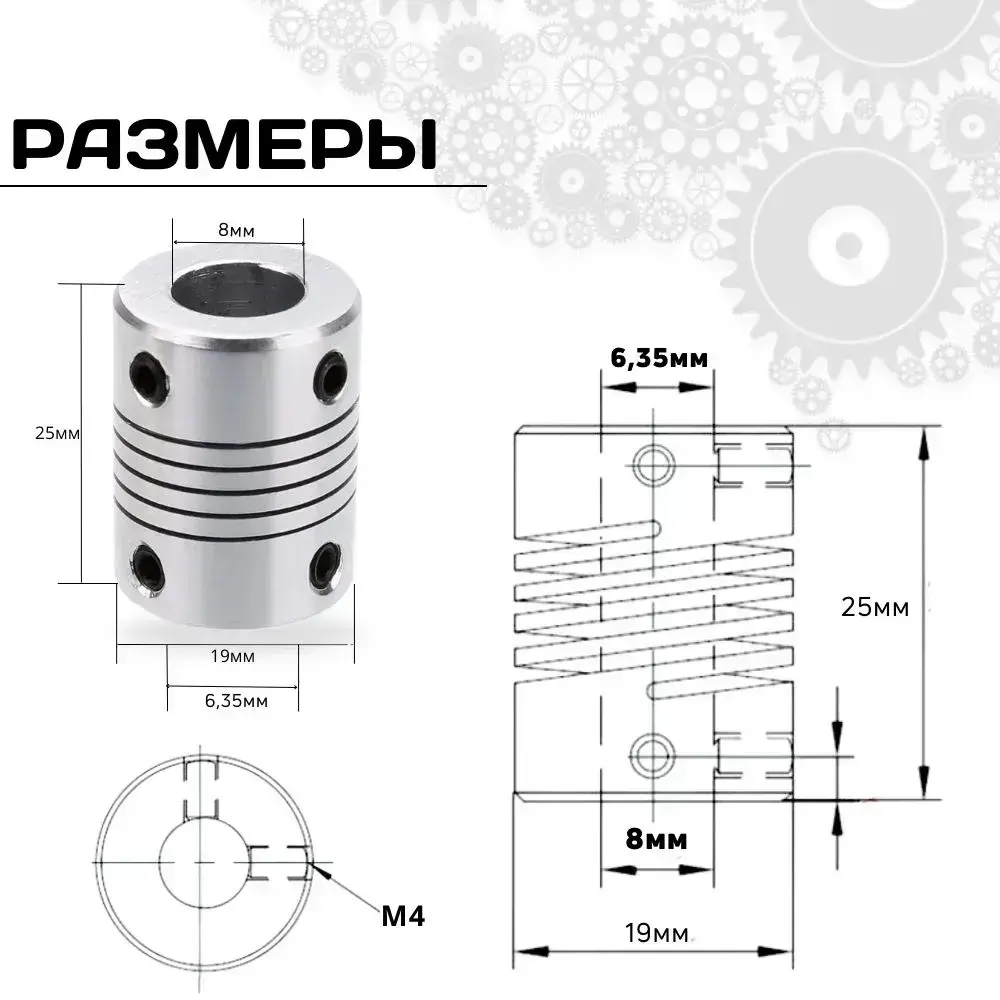 Муфта гибкая 6.35мм-8мм, D19 L25