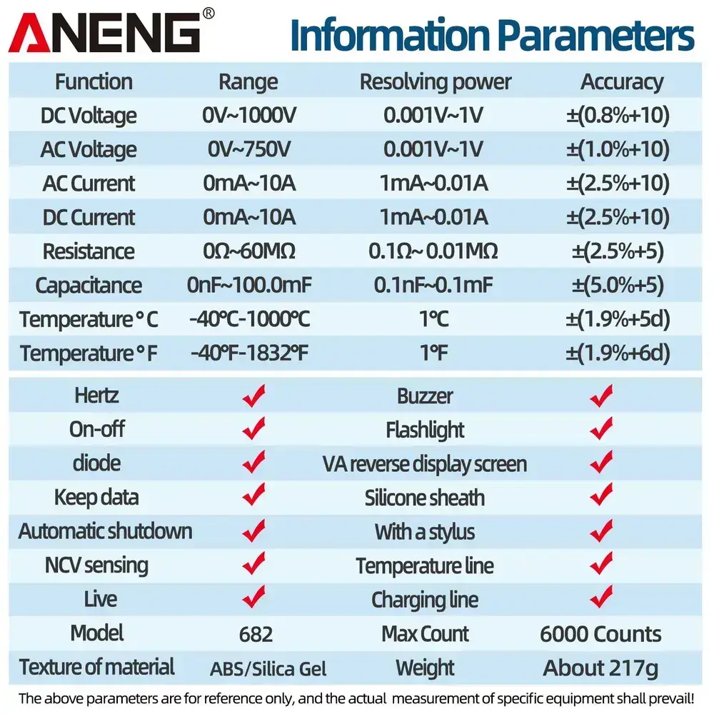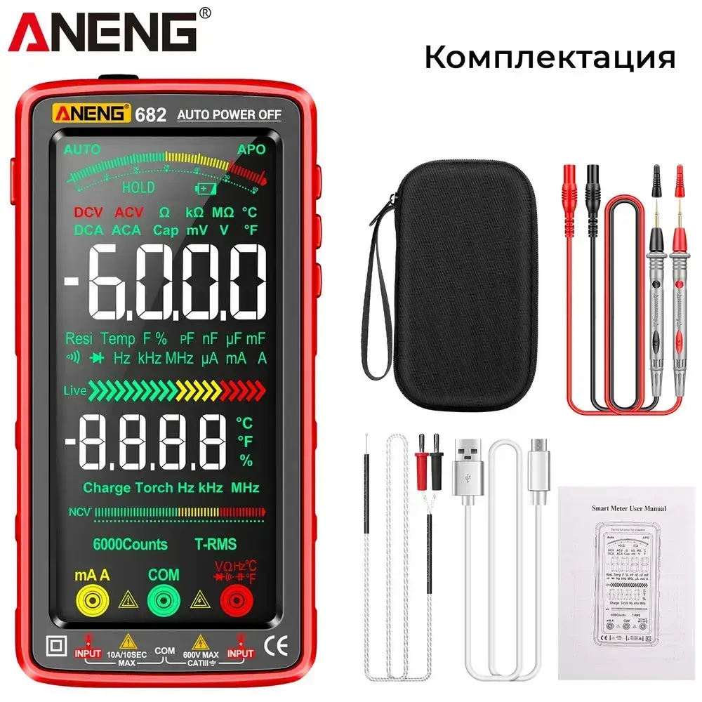 Мультиметр Aneng 682, интеллектуальный автоматический цифровой высокоточный универсальный измерительный прибор
