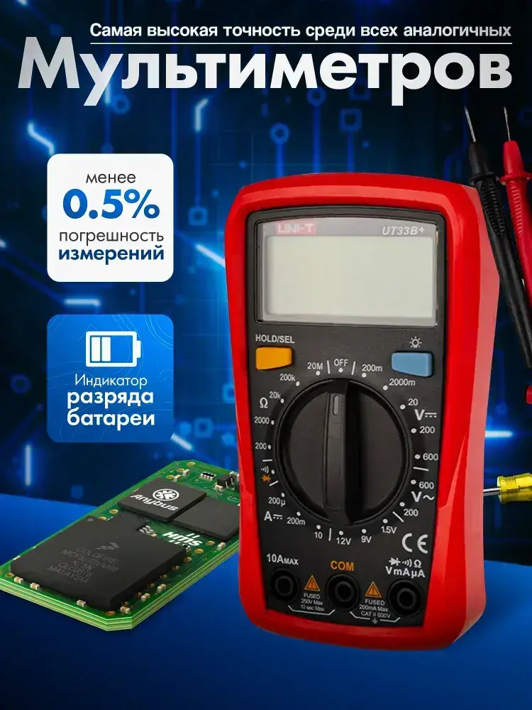 Мультиметр и тестер цифровой профессиональный с щупами UNI-T UT33B+