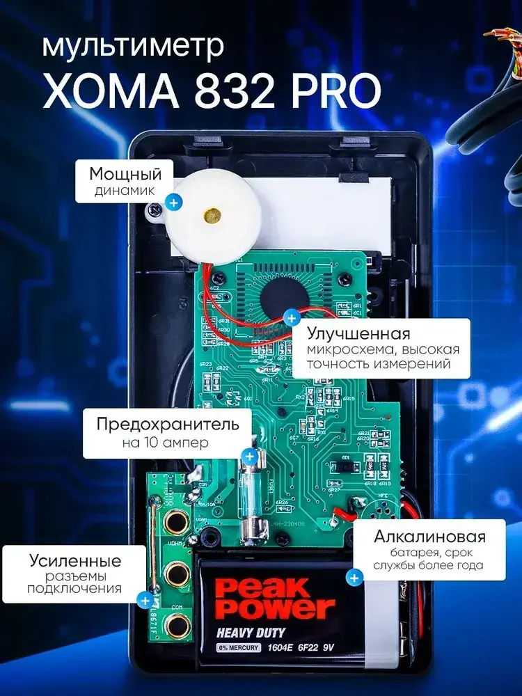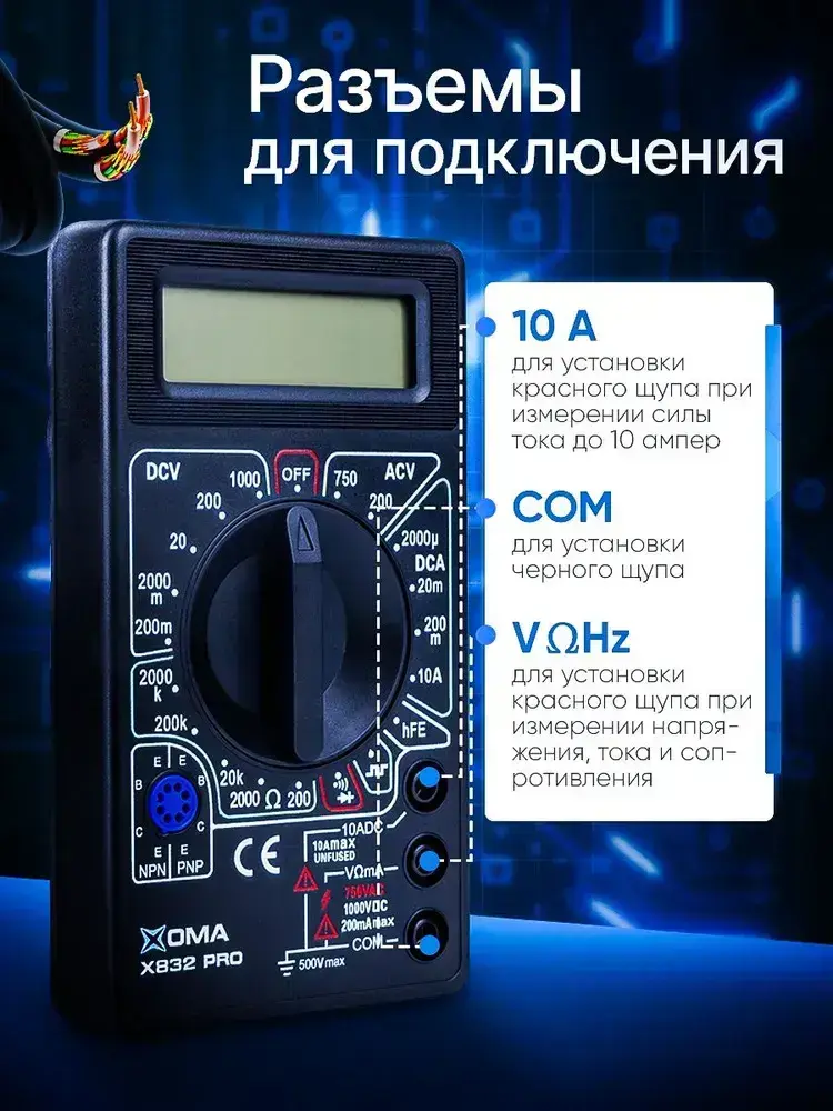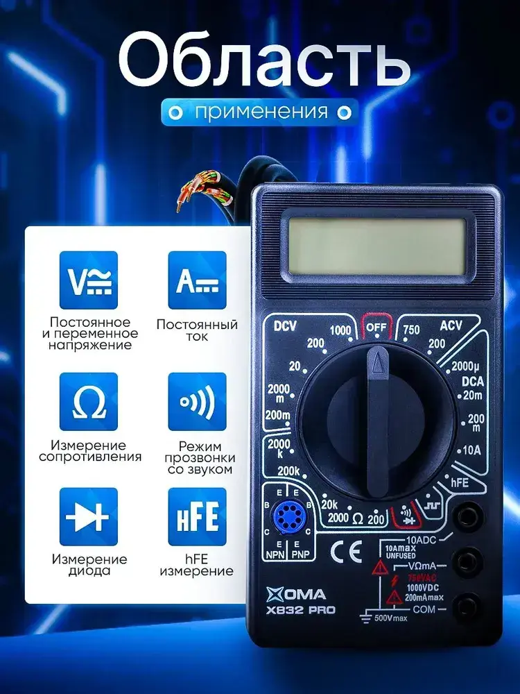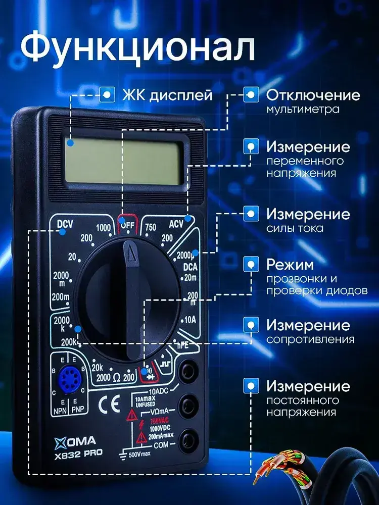 Мультиметр и тестер цифровой с прозвонкой и щупами