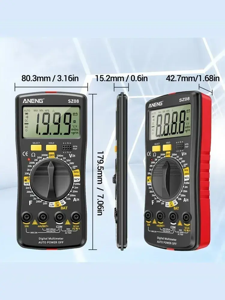 Мультиметр , портативный мультиметр цифровой, для измерения напряжения переменного и постоянного тока, автоматическое определение диапазона