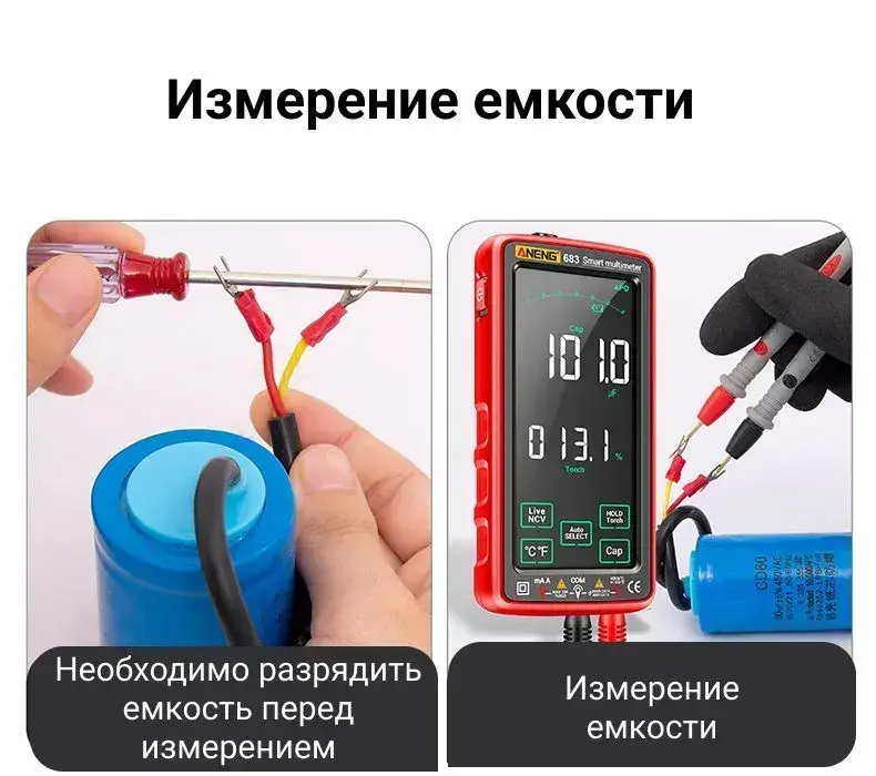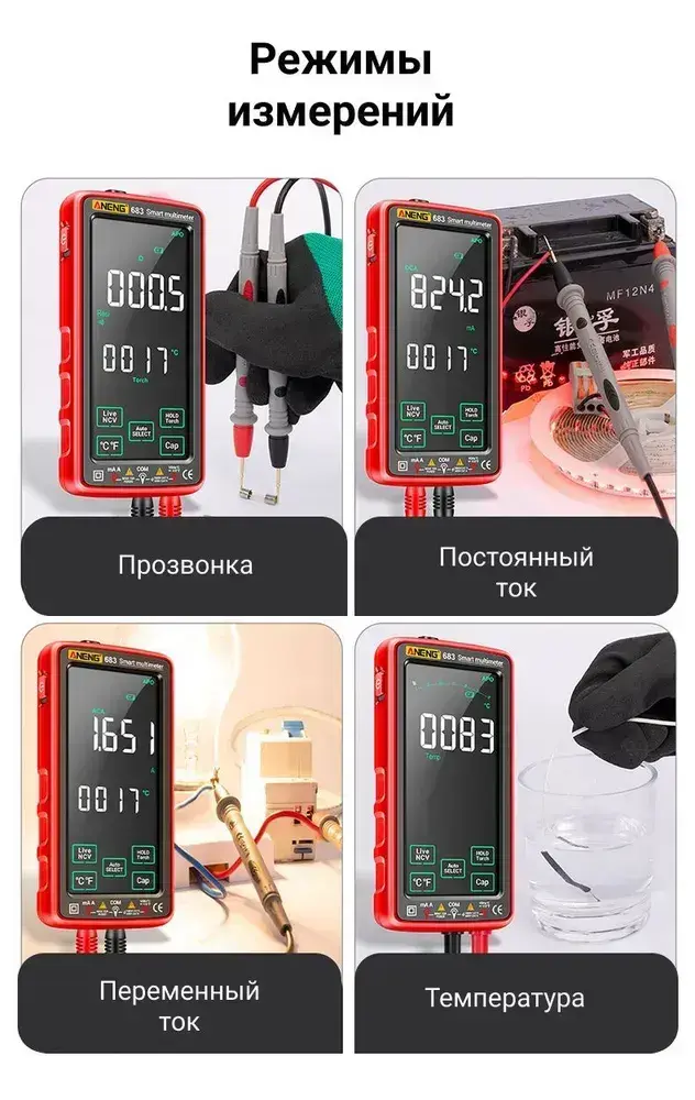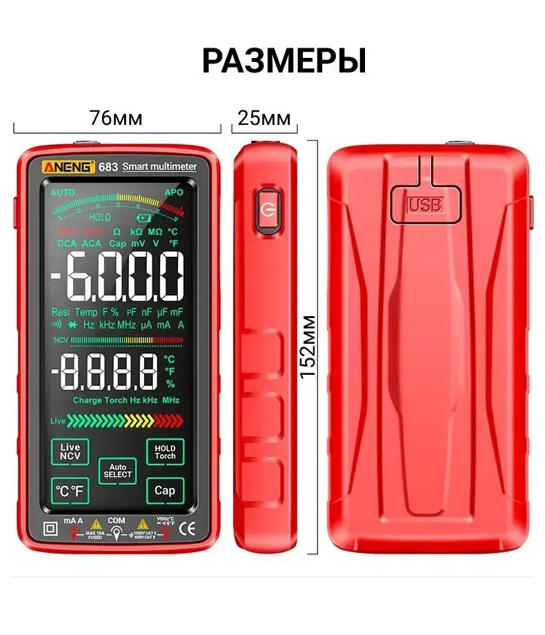 Мультиметр цифровой ANENG 683 PRO, встроенный аккумулятор, сенсорный дисплей