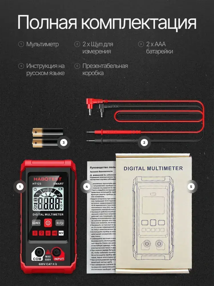 Мультиметр цифровой HABOTEST, 4000 отсчетов, вольтметр измерение напряжения переменного и постоянного тока с автодиапазоном (Инструкция на Русском Языке)
