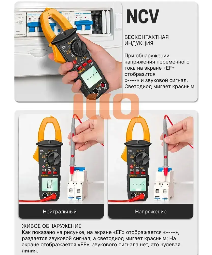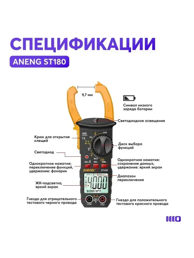 Мультиметр цифровой с прозвонкой автомобильный тестер электрический Токовые клещи