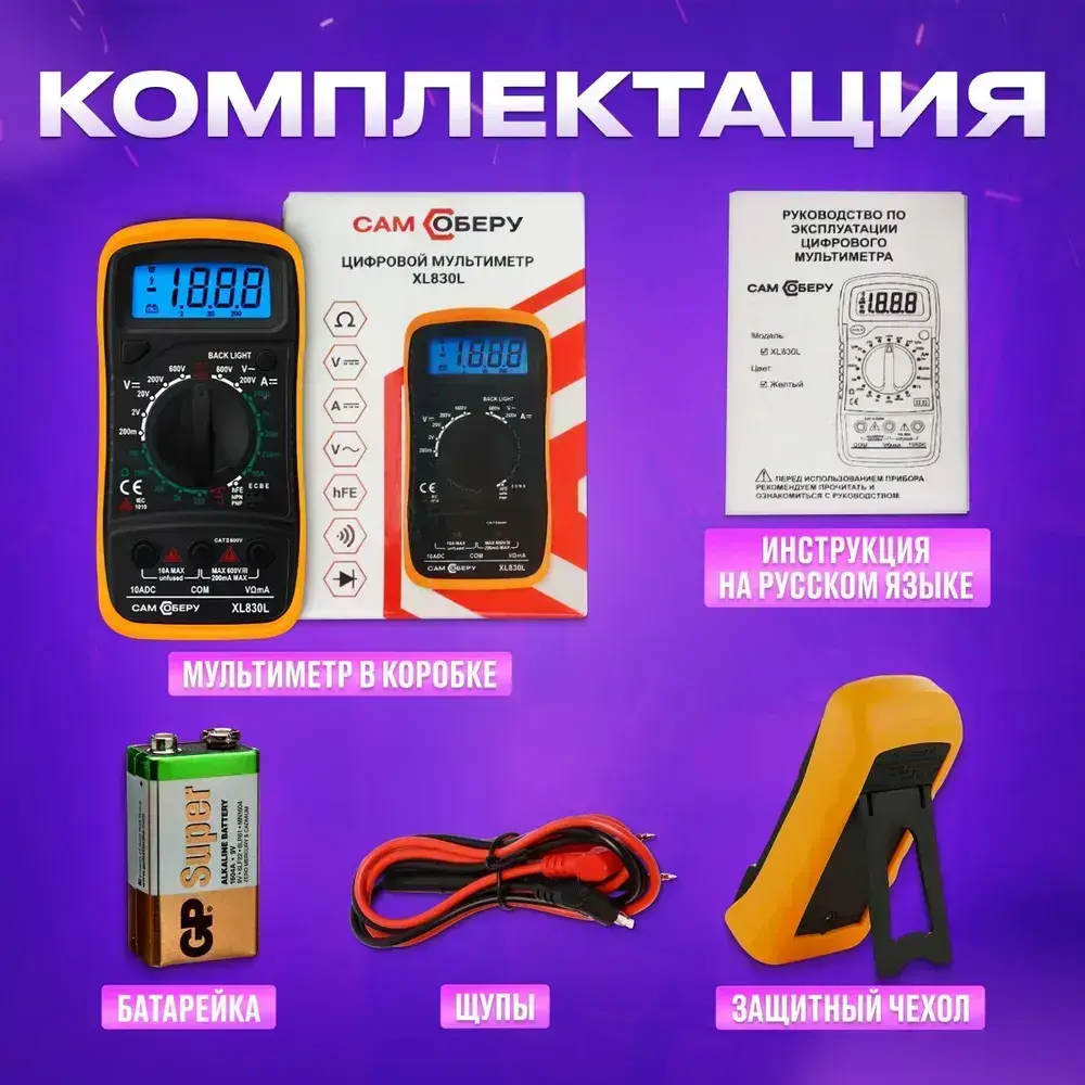Мультиметр цифровой с прозвонкой XL830L тестер электрический с щупами