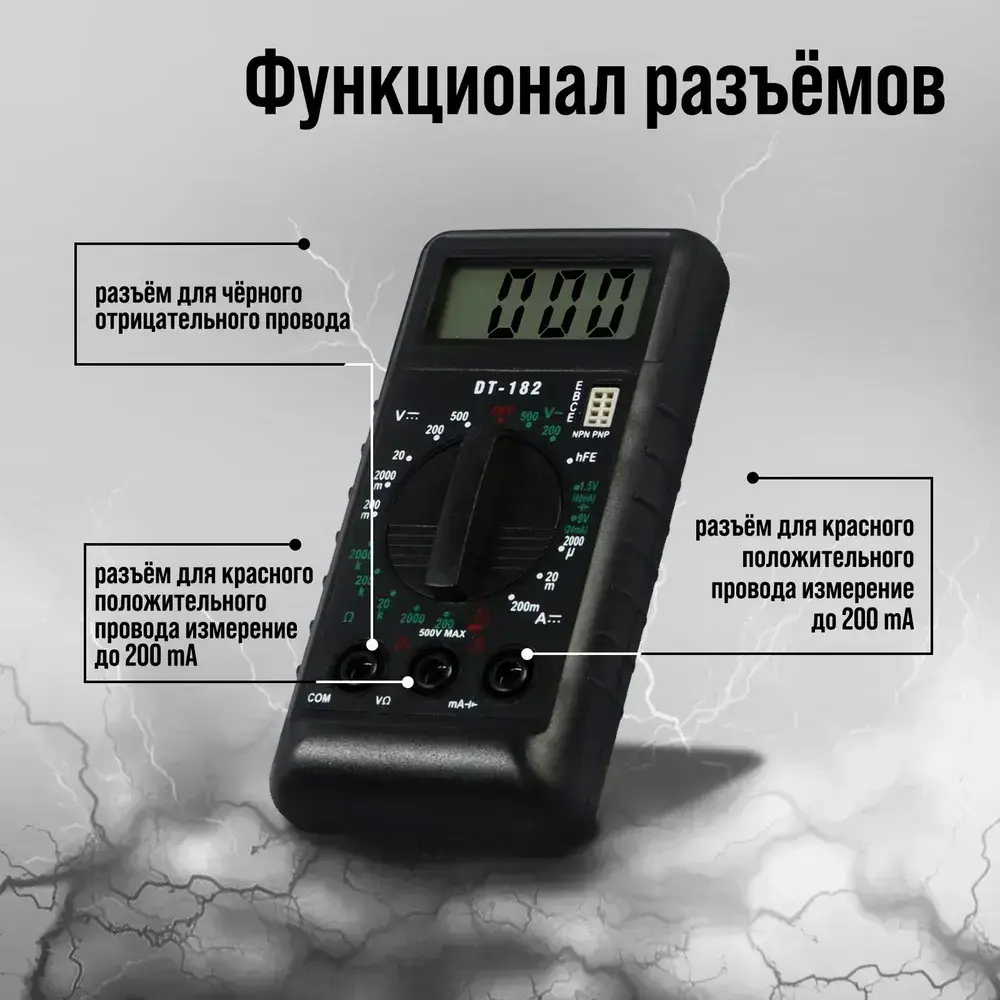 Мультиметр Тундра "мини", DT-182, ACV/DCV, DCA, 200-200 МОм, проверка батареек 1.5 и 9V