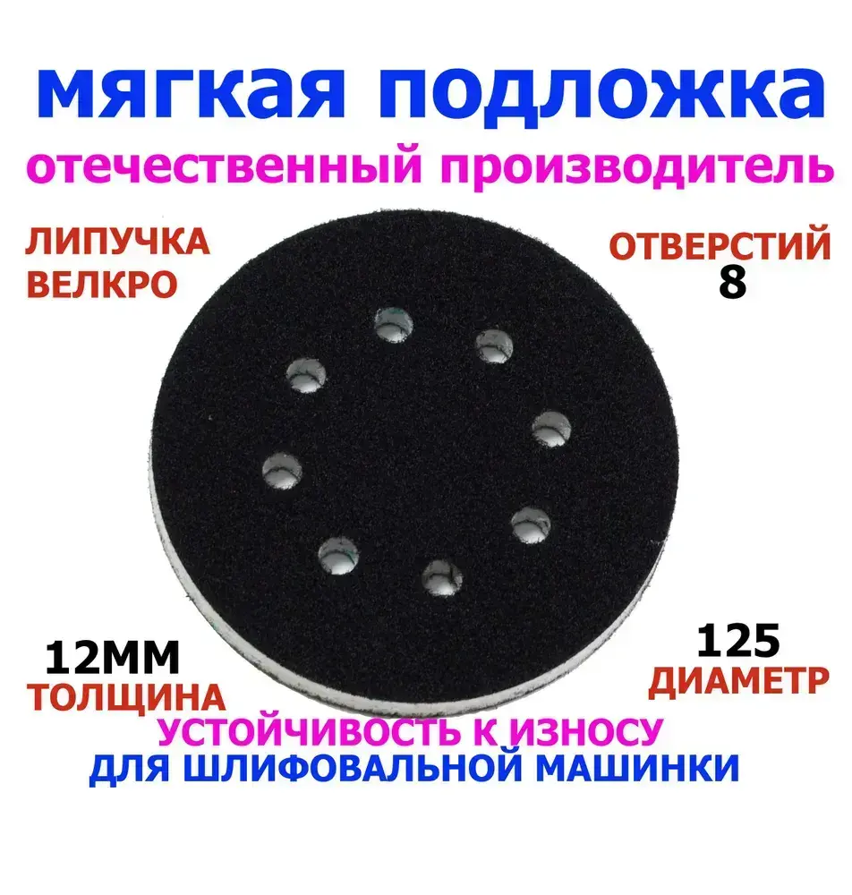 Мягкая подложка, защитная для шлифовальной машины 125мм, шлифмашинки, проставка толщиной 12мм на липучке.