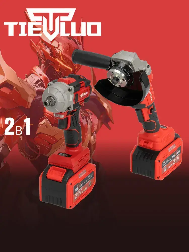 Набор 2в1 аккумуляторного инструмента TIELLIO: УШМ, Гайковерт бесщеточные 2 АКБ LI-ION 6Ач