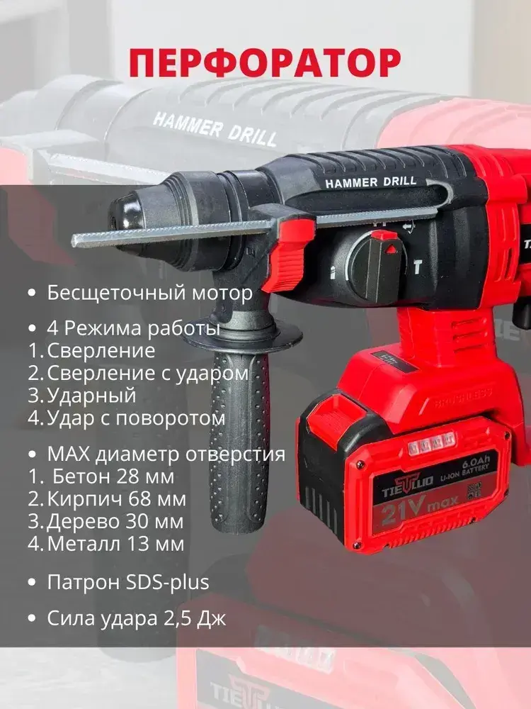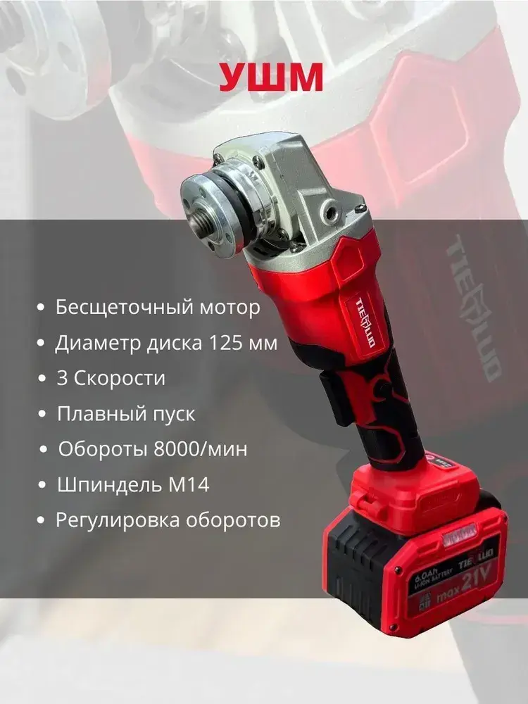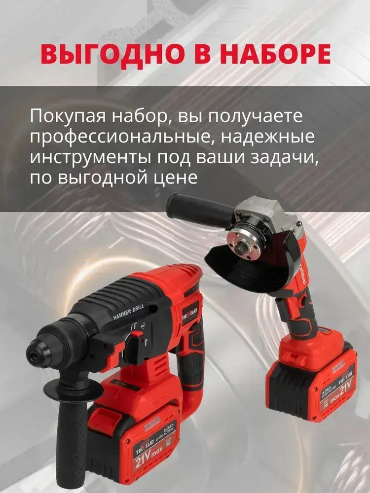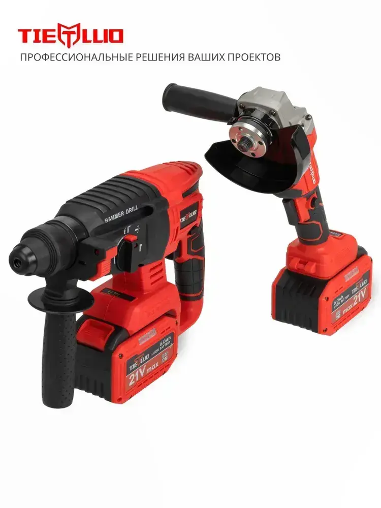 Набор 2в1 аккумуляторного инструмента TIELLIO: УШМ, Перфоратор бесщеточные 2 АКБ LI-ION 6Ач