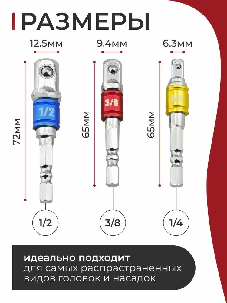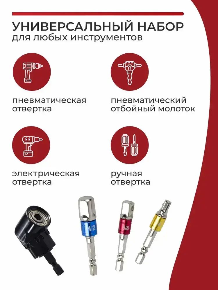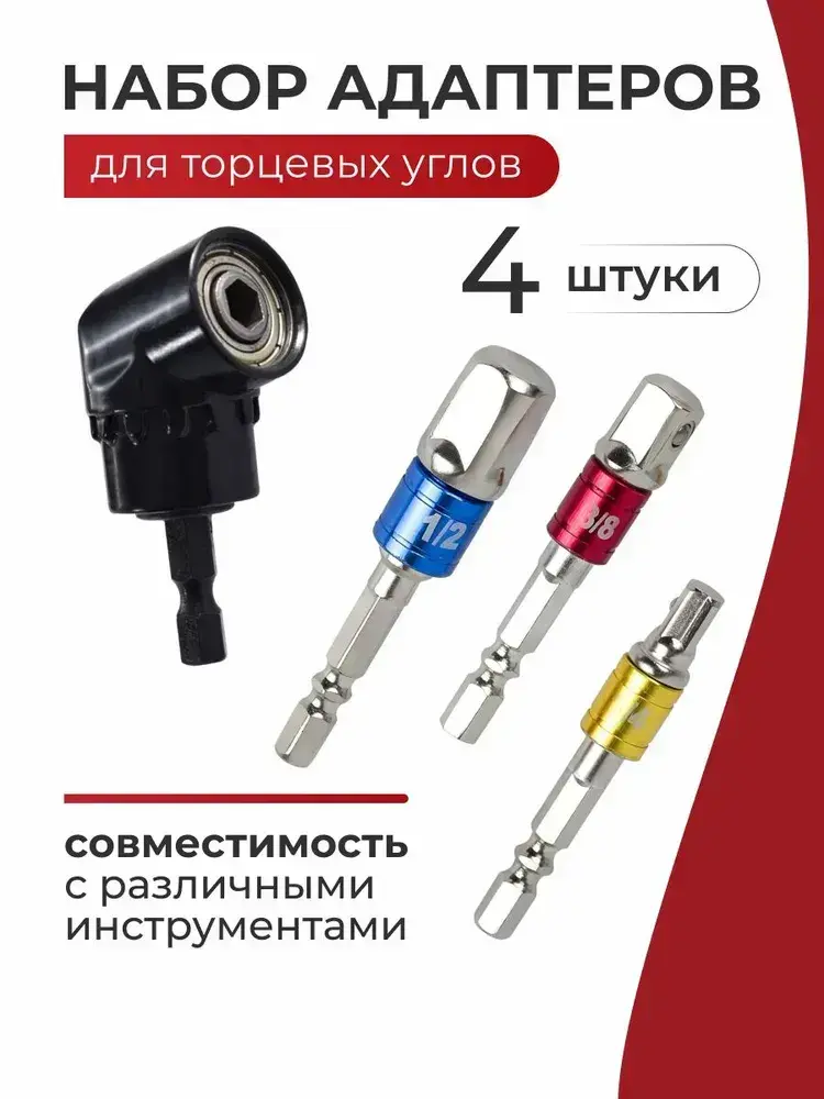 Набор адаптеров для торцевых головок 1/4 3/8 1/2 + угловой адаптер для шуруповерта, 4 шт