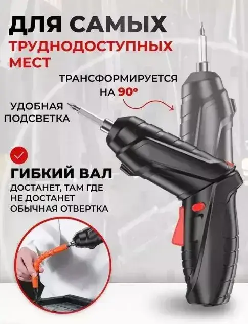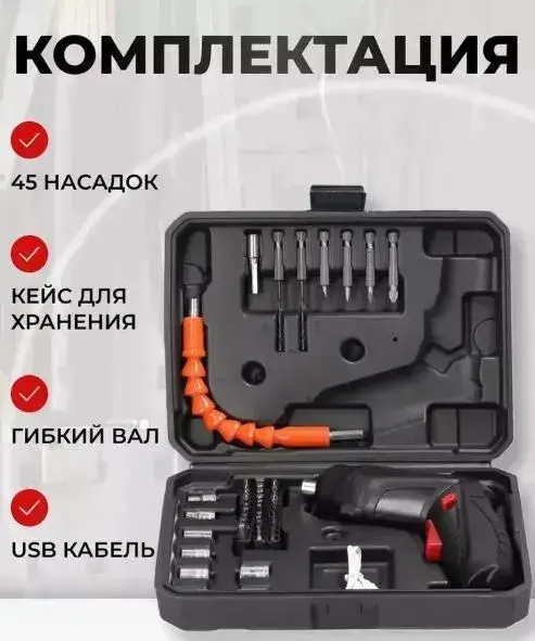 Набор аккумуляторная отвертка-трансформер и 45 насадок/оснасток в кейсе